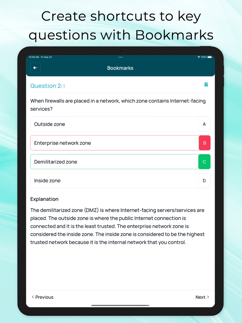 Bookmarking: Save questions for later review or to revisit areas that you need to focus on.
