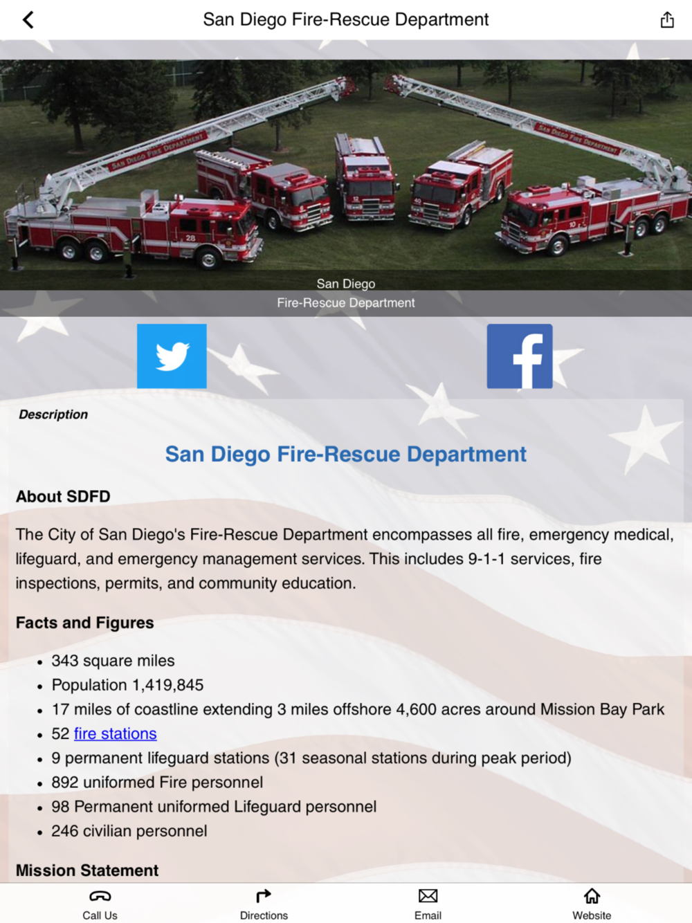 This app is for the employees of SDFD, their families, and the community they serve. This app contains information about the department as well as fire safety tips. SDFD Employees will have access to a full range of wellness tools.
