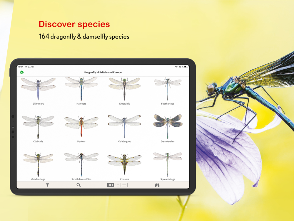 A comprehensive field guide to the dragonflies and damselflies of Britain and Ireland and Europe. Select your country and start identifying dragonflies. This app covers in detail the identification of all 164 species that have been recorded in Europe.