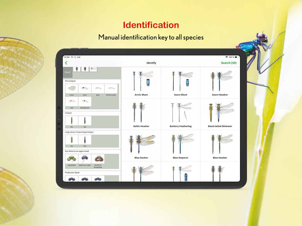 It is the only serious app to identify native dragonflies and damselflies aimed at the beginner as well as the serious professionalist including automatic photo recognition.