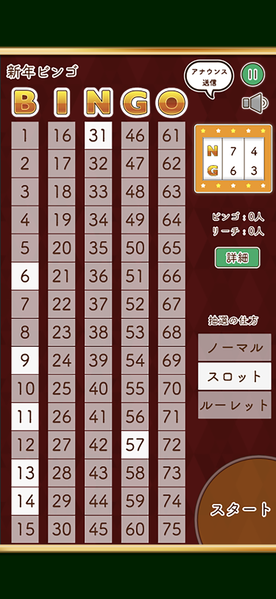 誰がリーチになった・ビンゴになったなど、主催者がリアルタイムに状況を伝えることで盛り上がること間違いなし!