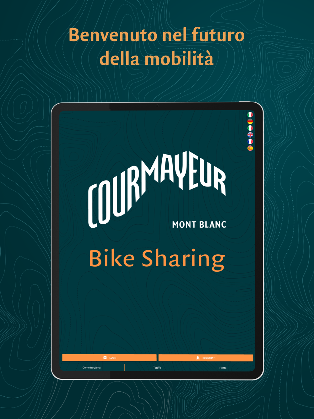 Benvenuto in Courmayeur Bike Sharing App, il servizio gestito da Emoby per lo sharing di bici elettriche e muscolari.