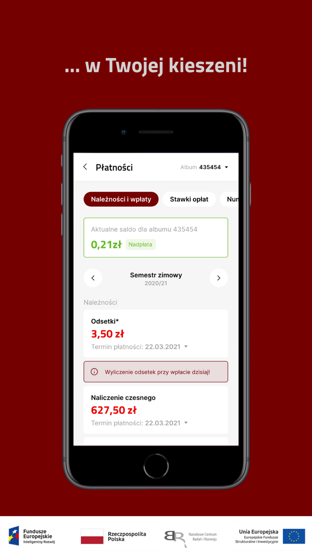 Aplikacja mobilna przeznaczona jest dla studentów Politechniki Łódzkiej. Jej uruchomienie ma na celu wzrost satysfakcji studentów, którzy otrzymająnarzędzie w wersji mobilnej, zawierającedane dotyczące ich toku studiów.W Aplikacji student znajdzie większośćfunkcjonalności z Webdziekanatu, między innymi wszystkie niezbędne informacje o płatnościach i stypendiach, a takżebędziemógłzweryfikowaćoceny i punkty ECTS uzyskane w poszczególnych semestrach.Aplikacja mobilna została stworzona w ramach projektu Zintegrowany Program Politechniki Łódzkiej na rzecz rozwoju regionu łódzkiegowspółfinansowanego przez UnięEuropejską w ramach Europejskiego Funduszu Społecznego.
