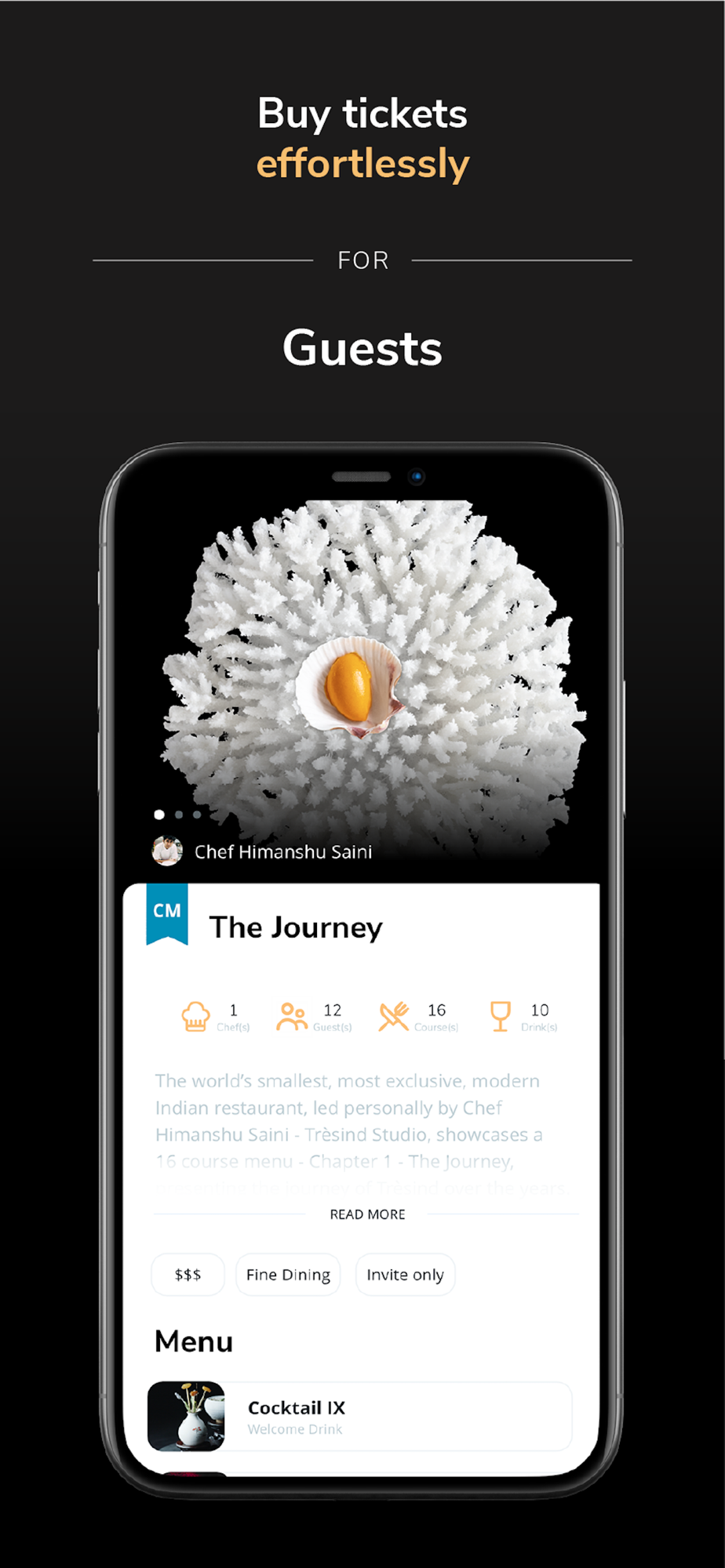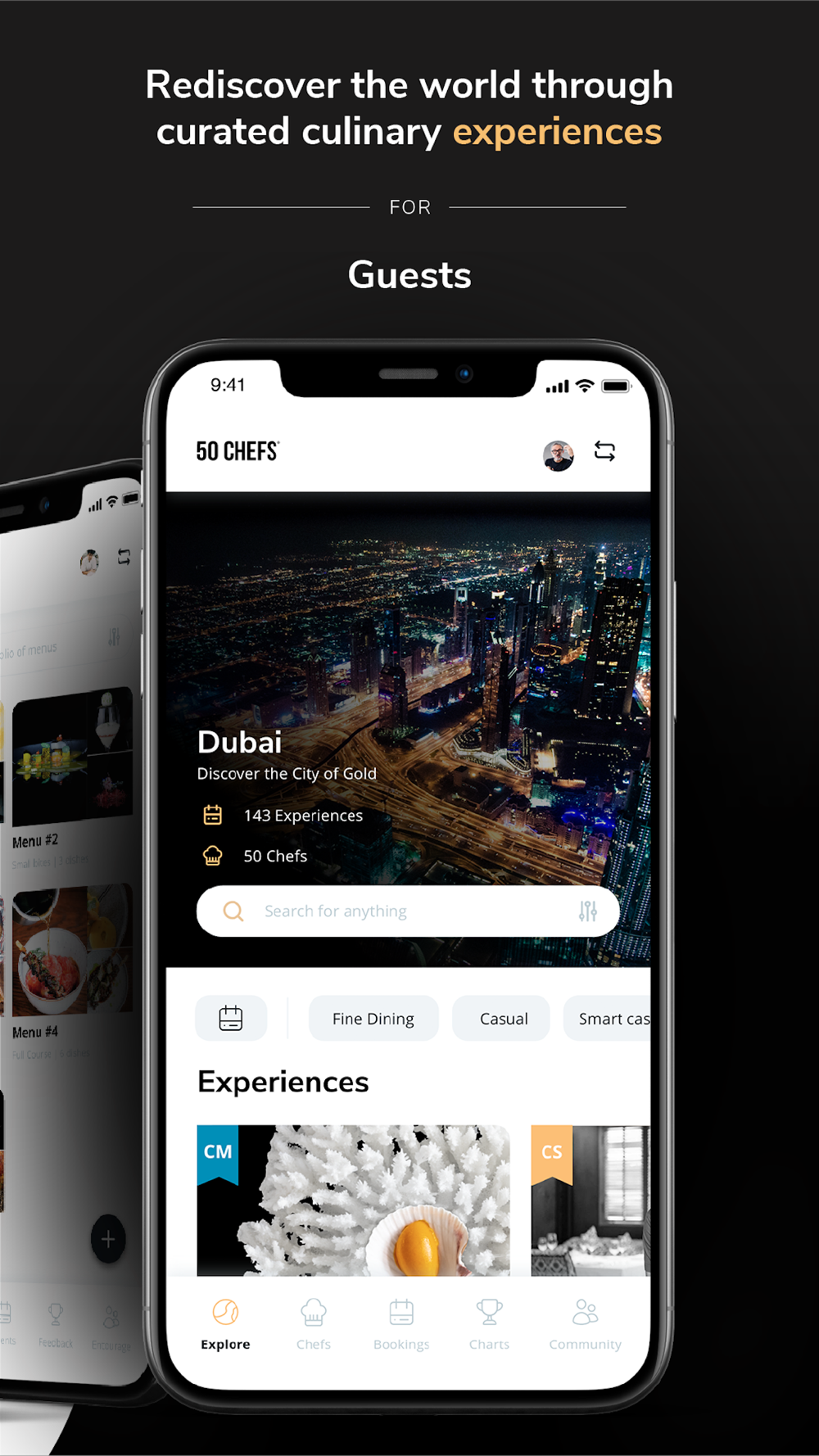 As a guest, discover and buy tickets to attend exceptionally curated culinary events. As a chef, build your digital portfolio to compete and collaborate with other remarkable chefs, hosting truly unique events in your own restaurant. Together you will evolve the culinary scene in your city and support it in its mission to climb the charts and become the next culinary capital of the world.