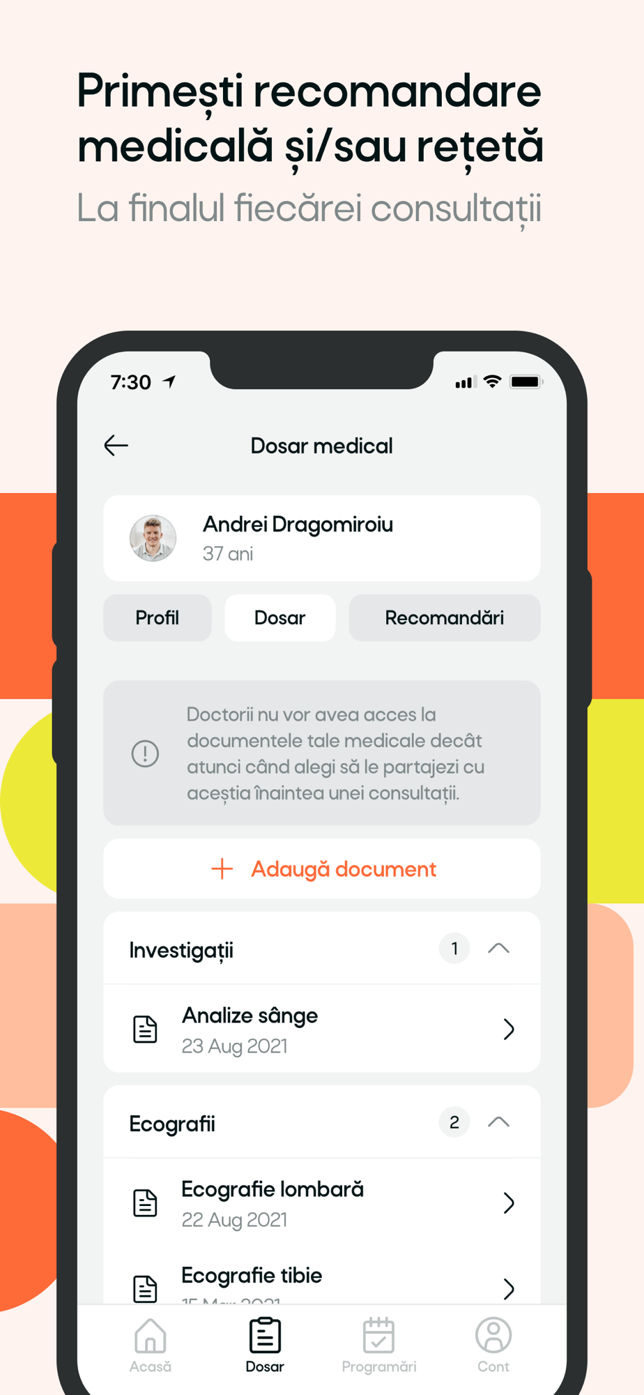 - Doctorul îți poate oferi prin intermediul aplicației toate documentele necesare urmării tratamentului tău;