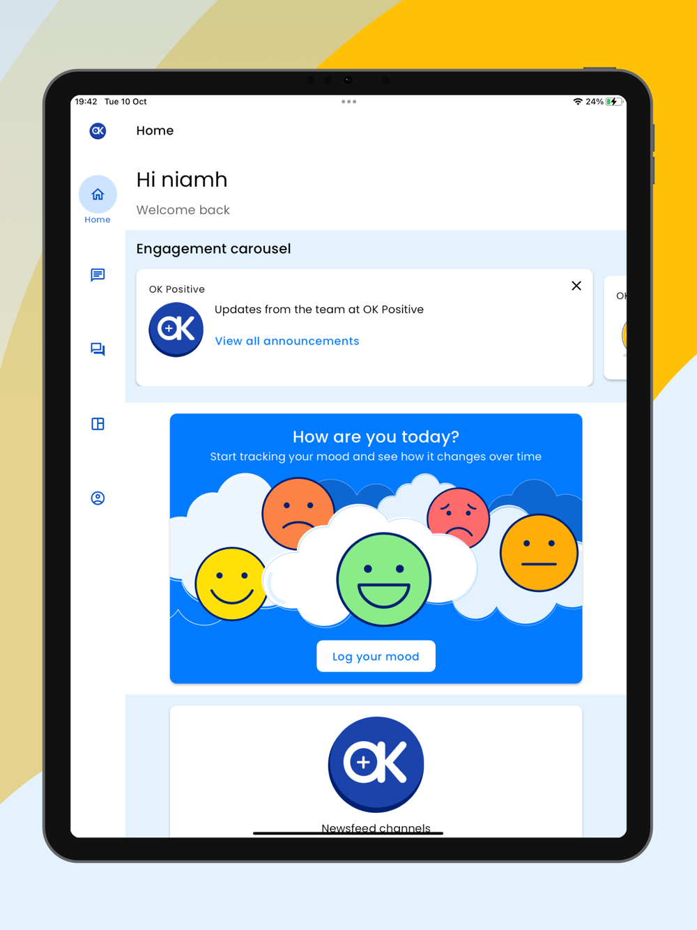 OK Positive is a tool for businesses to support the mental health of their employees. The app is 100% free for users when your employer signs up through our website.