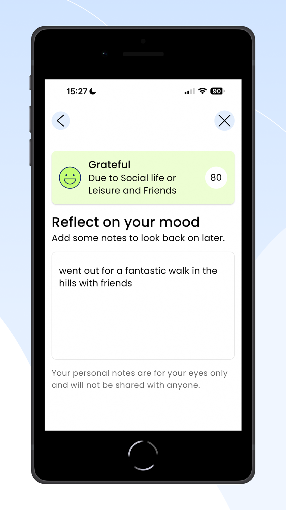 OK Positive supports your mental health through daily mood tracking and personal analytics, enabling you to identify your mental health triggers and see trends over time.