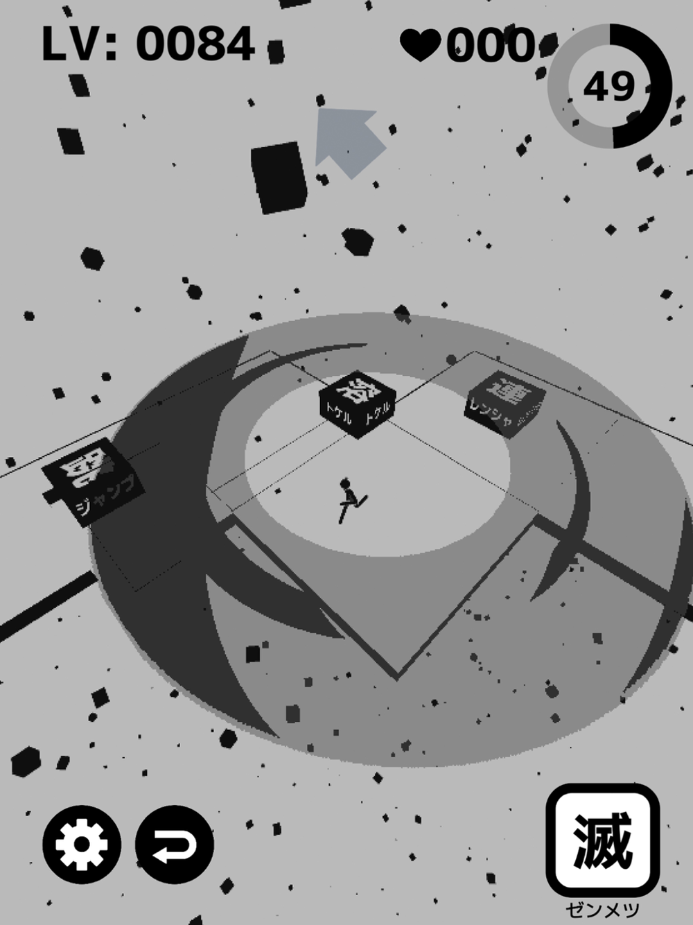 このゲームは、走り続けるキャラクターをステージから落下させないように、障害物をくぐったり、飛び越えたり、時には破壊しながらゴールを目指していくゲームです。