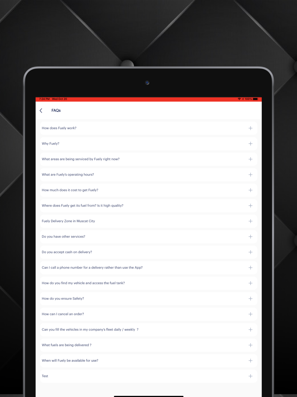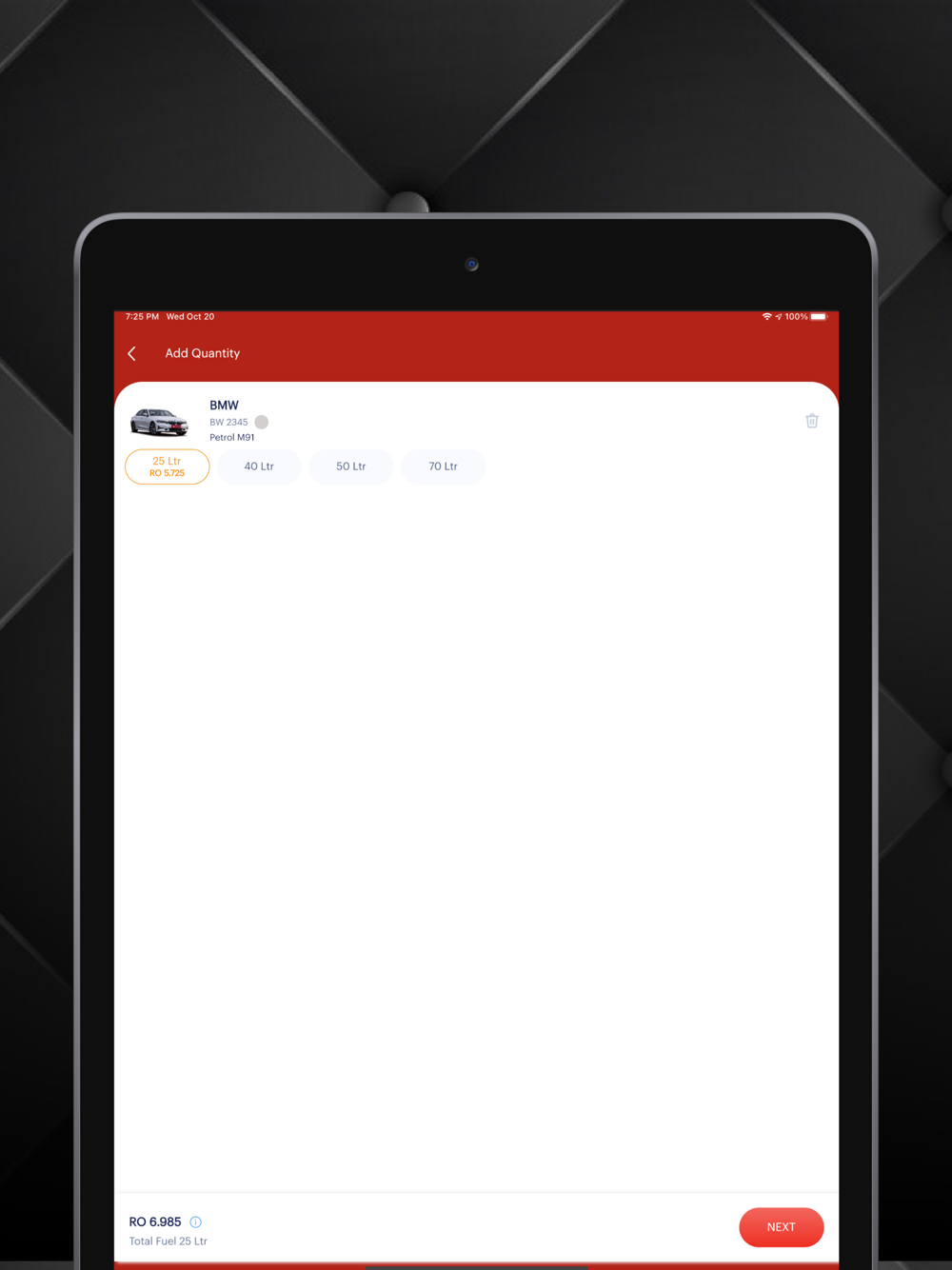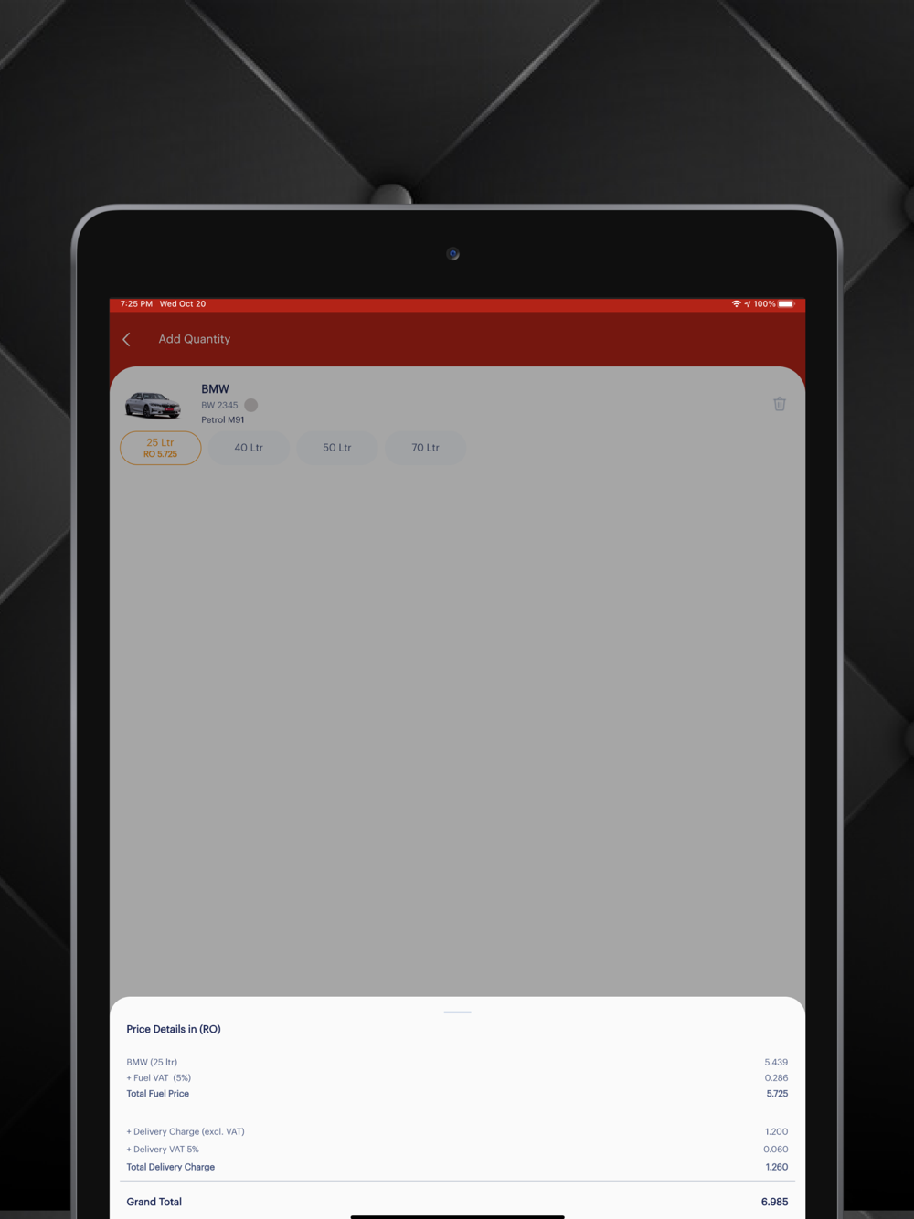 This is an App for direct fuel delivery to the customer's vehicle in Oman. The customer can enter his / her basic details, pin address on map, vehicle details, time and day of delivery required and pay for the fuel online.