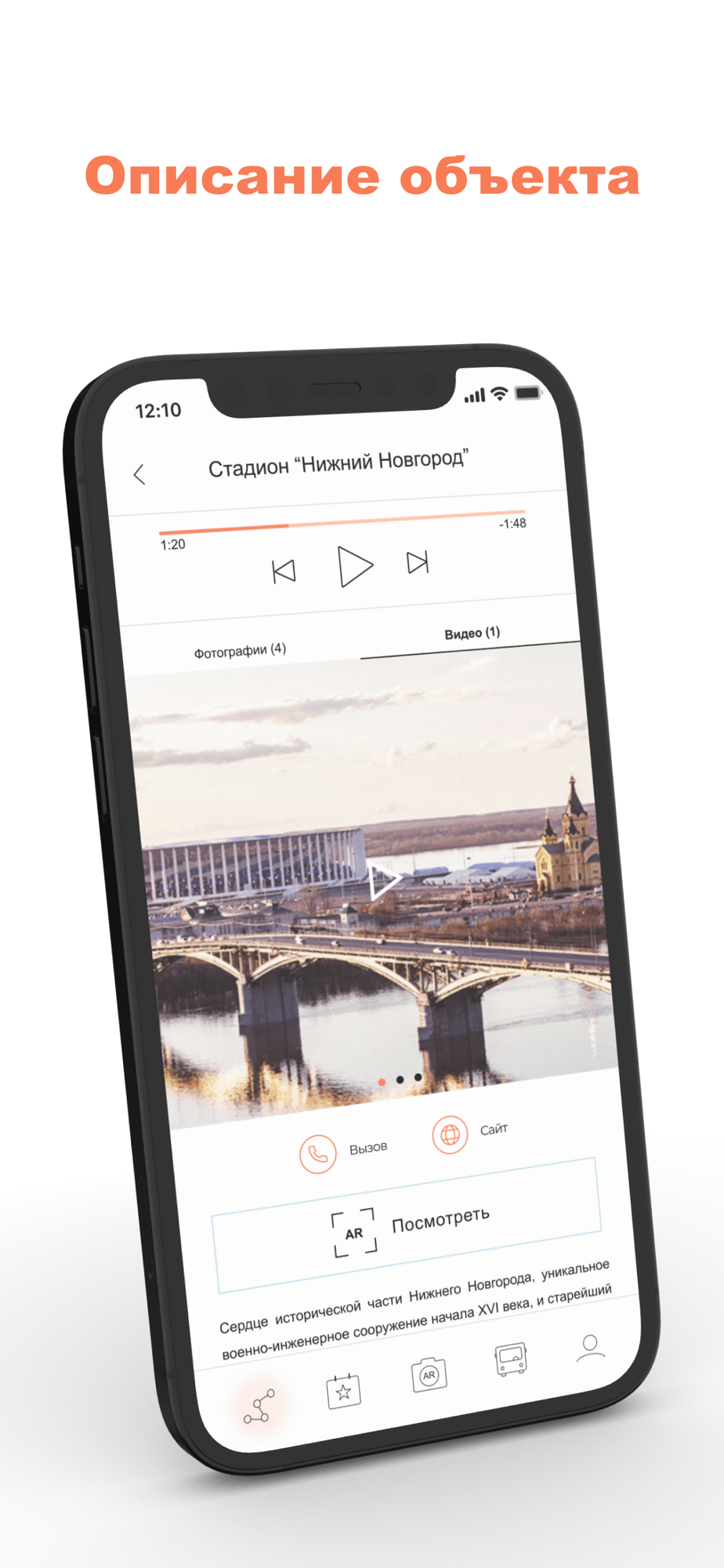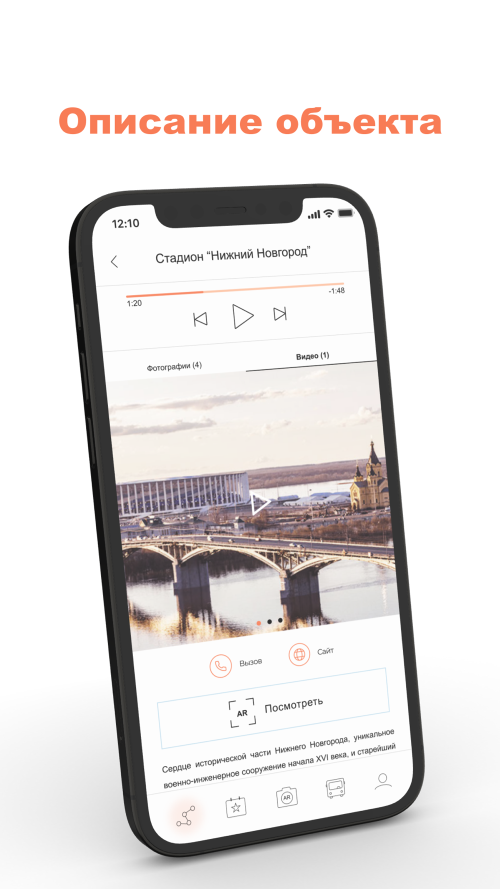 AR Гид - электронный экскурсовод по Нижнему Новгороду. Содержит самые популярные туристические маршруты по знаковым местам города с фотографиями, видео роликами и текстовым описанием. Вы можете не только посмотреть фотографии, но и разместить мини 3D объект популярных объектов прямо у себя на столе с использованием технологии дополненной реальности (AR).