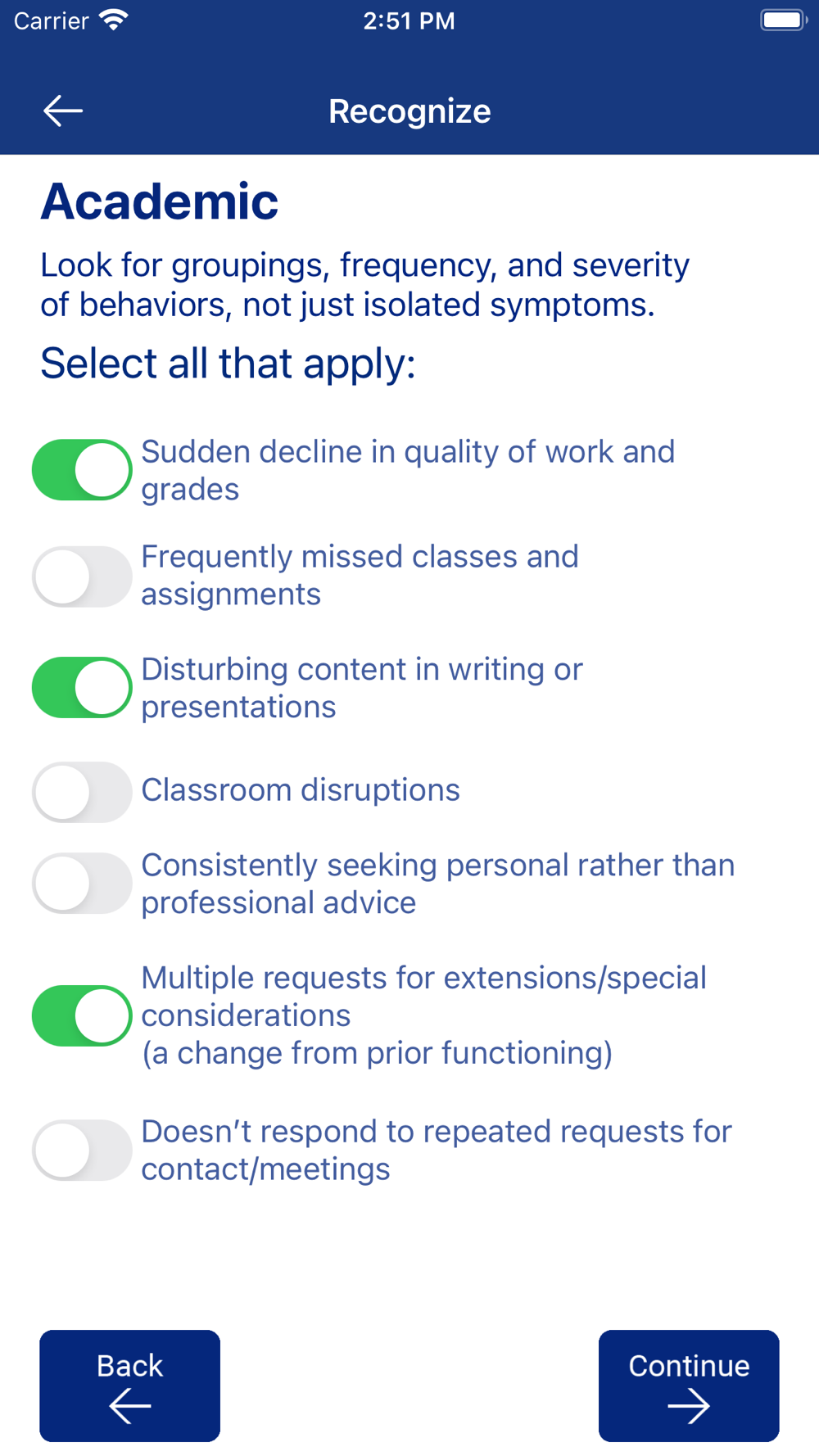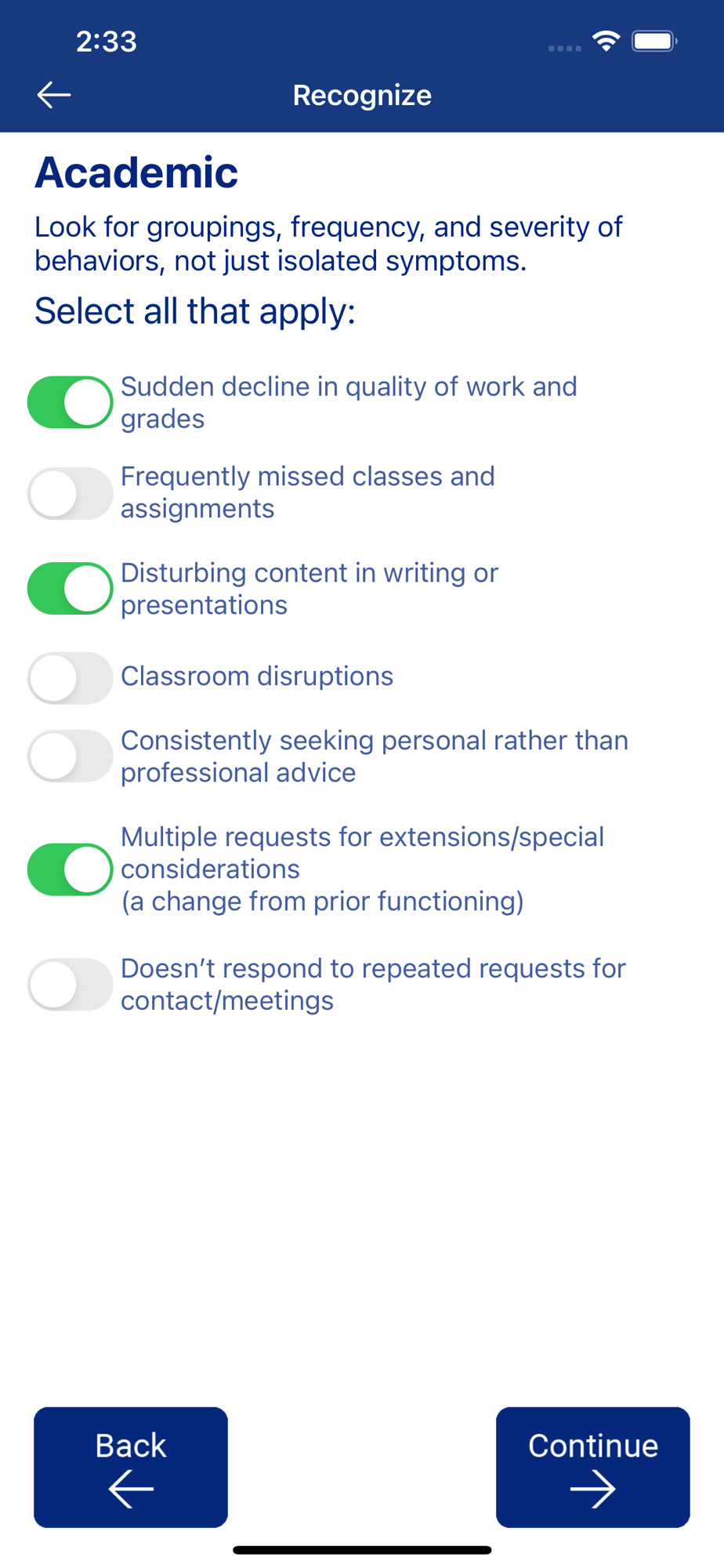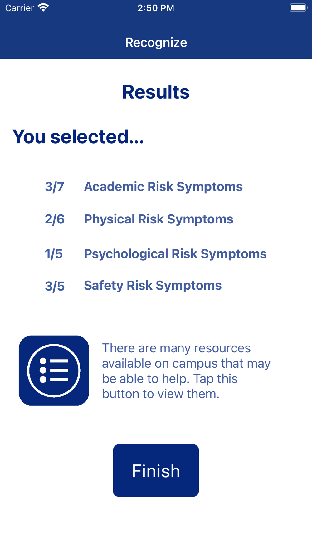 Recognize: Complete a survey to see how many indicators of distress you or someone on campus is exhibiting.