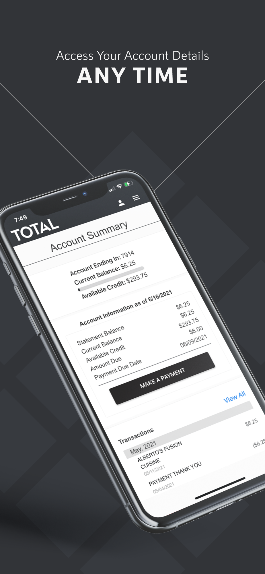 Easily Manage your Total Visa account right from the mobile app!