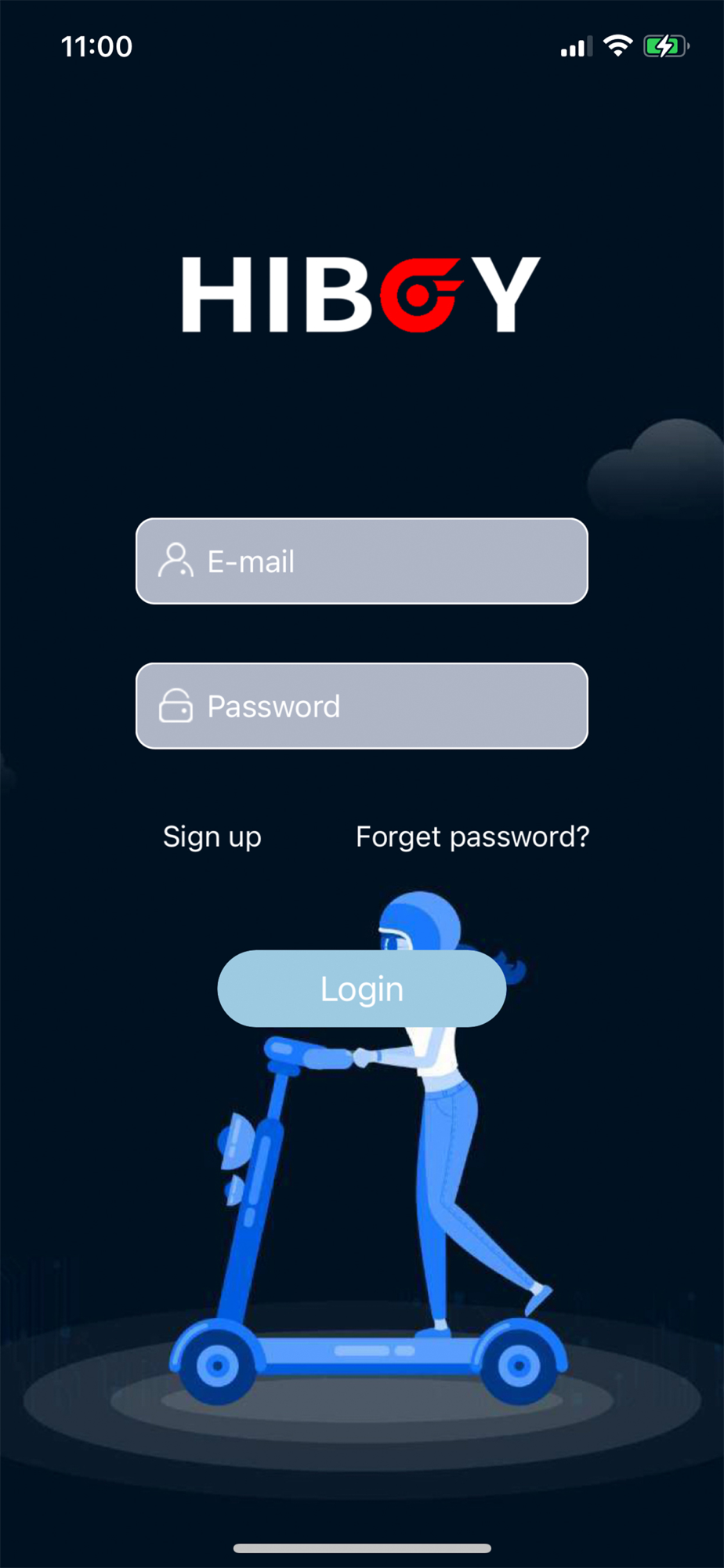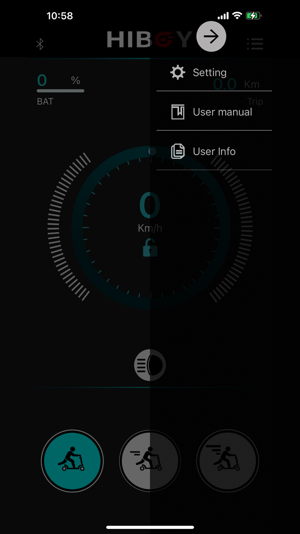 HIBOY NEX5 App controls the scooter via Bluetooth connection.