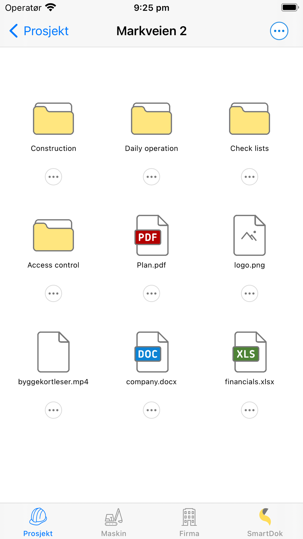 - Easy access to documentation for projects, certificates and licenses for machines and operating manuals
