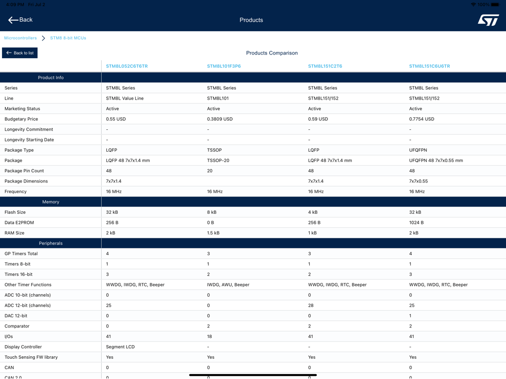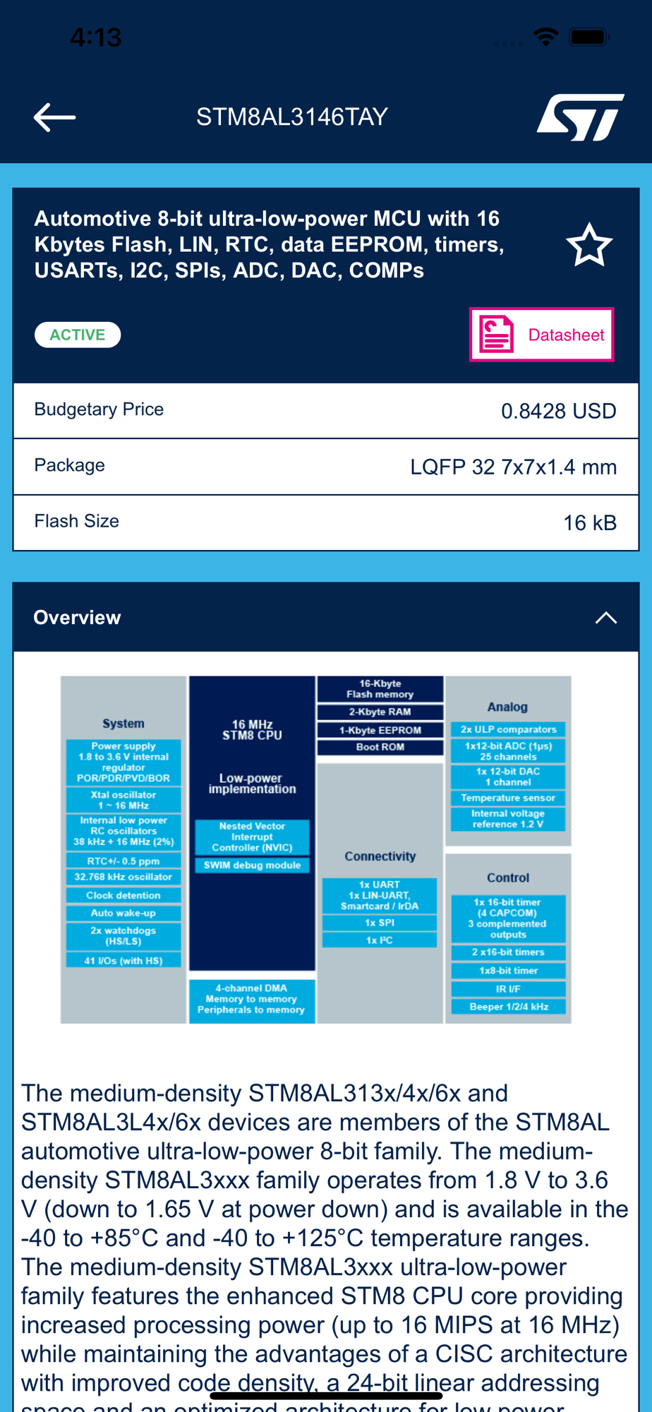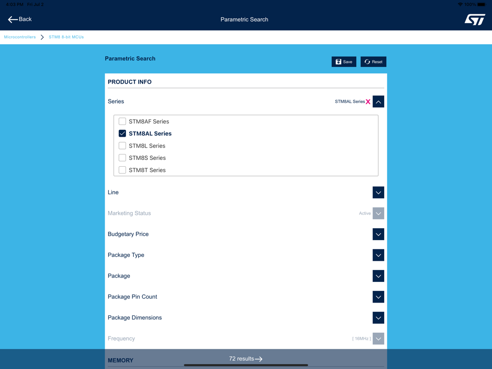 STM8 Finder features easy-to-use selection tools that provide you direct access to documentation, and a connection to MCU communities. You will find the microcontroller or