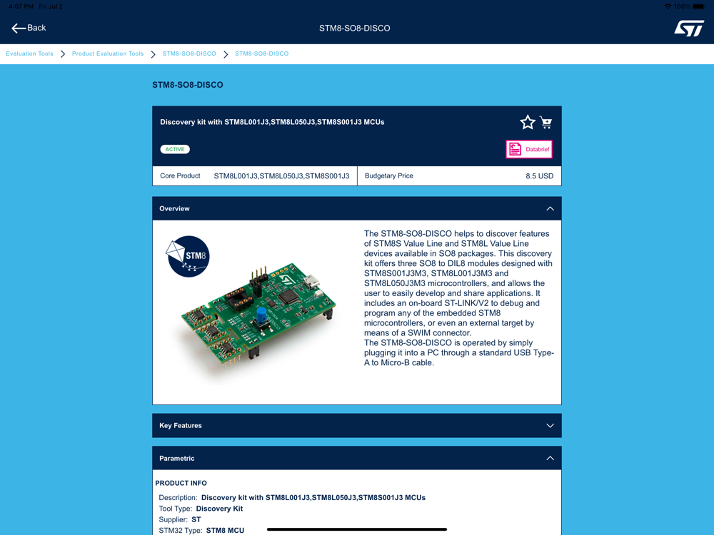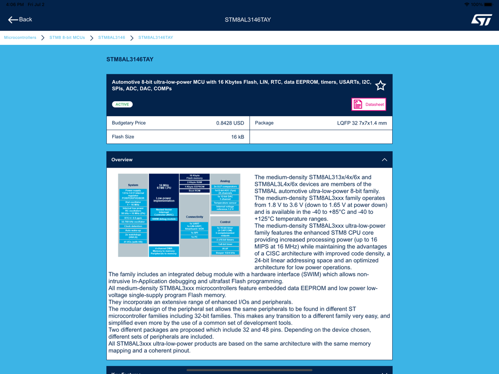 - Instant access to microcontrollers and boards key features, functional block diagrams and technical documentation