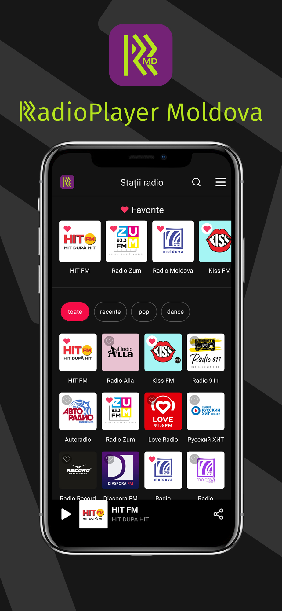 Nu doar că am colectat cele mai bune posturi de radio într-o singură aplicație, am creat aplicația RadioPlayer cât mai simplă, cu o interfață elegantă și ușor de utilizat.
