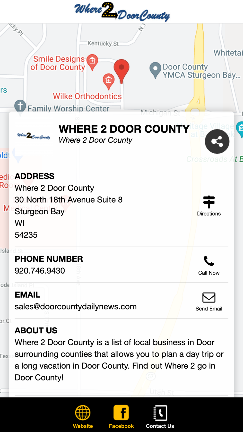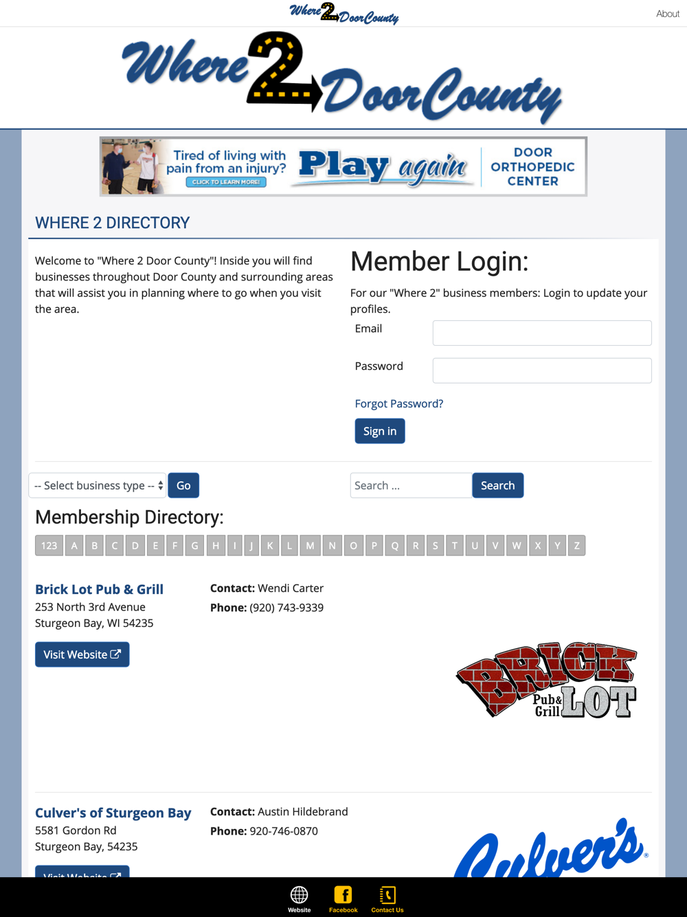 Where 2 Door County is a list of local businesses in Door surrounding counties that allows you to plan a day trip or a long vacation in Door County. Find out Where 2 go in Door County!