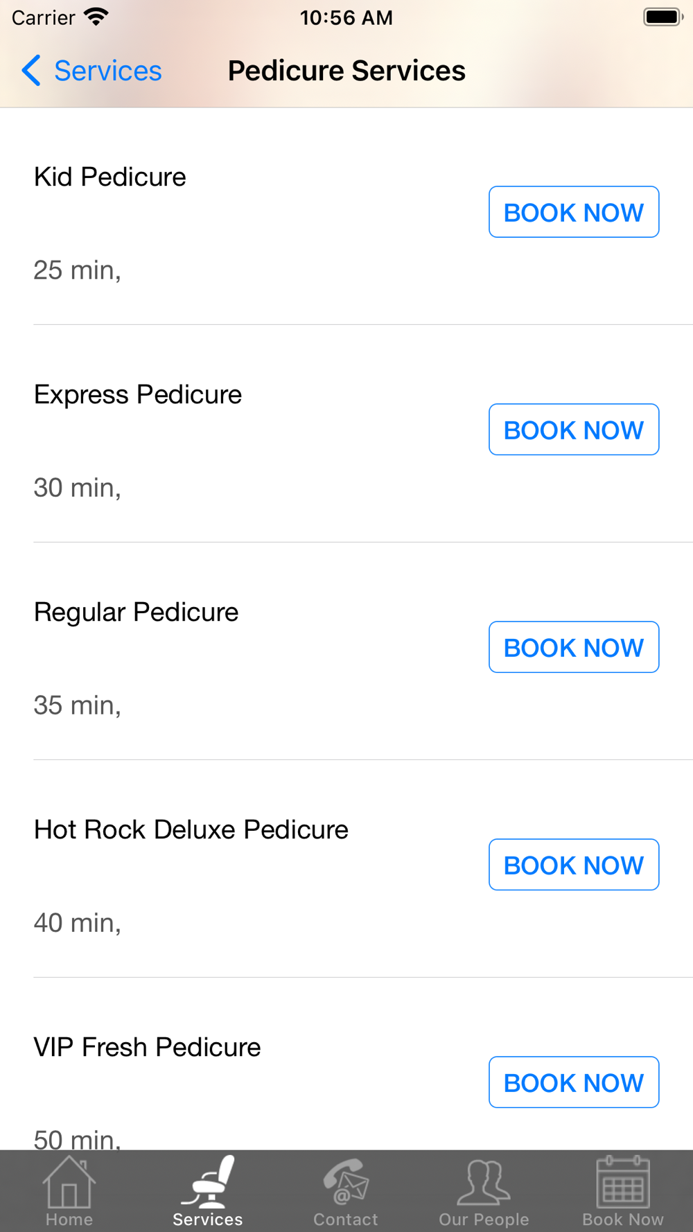 4. Services Menu: Browse the services we offer with times and prices.