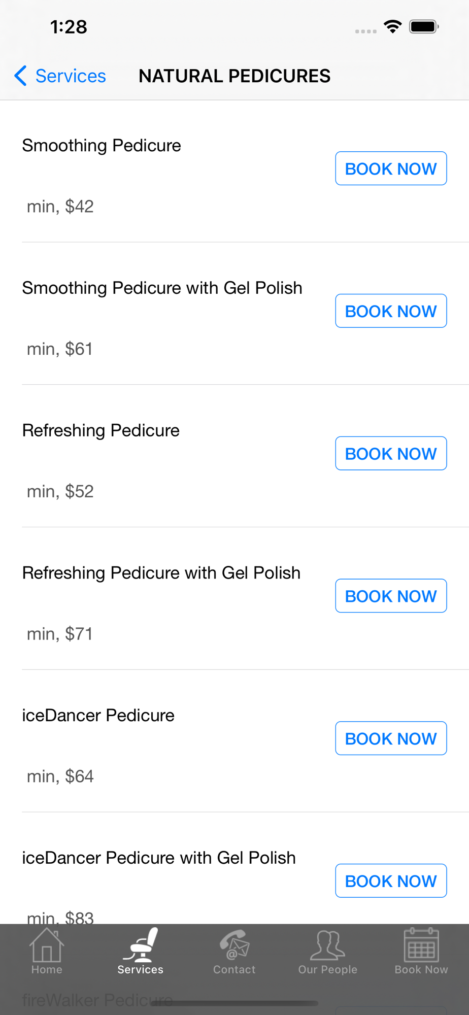 4. Services Menu: Browse the services we offer with times and prices.