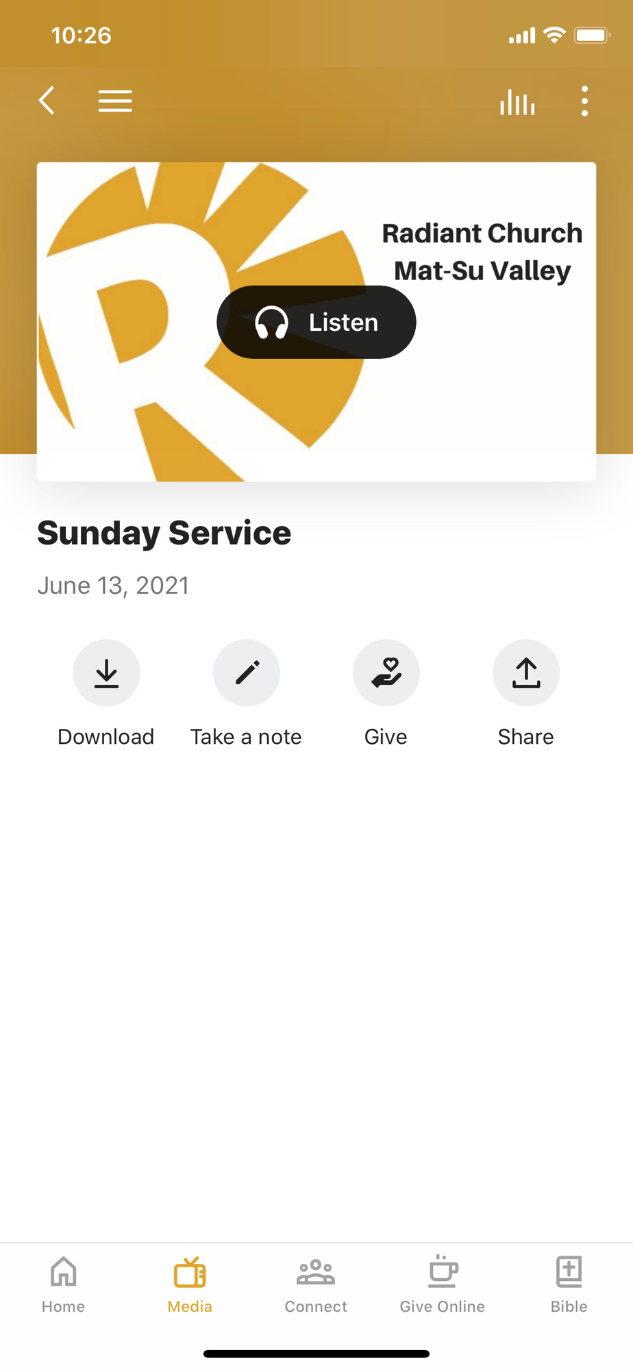 This app will help you stay connected with the day-to-day life of our church. With this app you can: watch or listen to past messages; stay up to date with push notifications; share your favorite messages via Twitter, Facebook, or email; and download messages for offline listening.