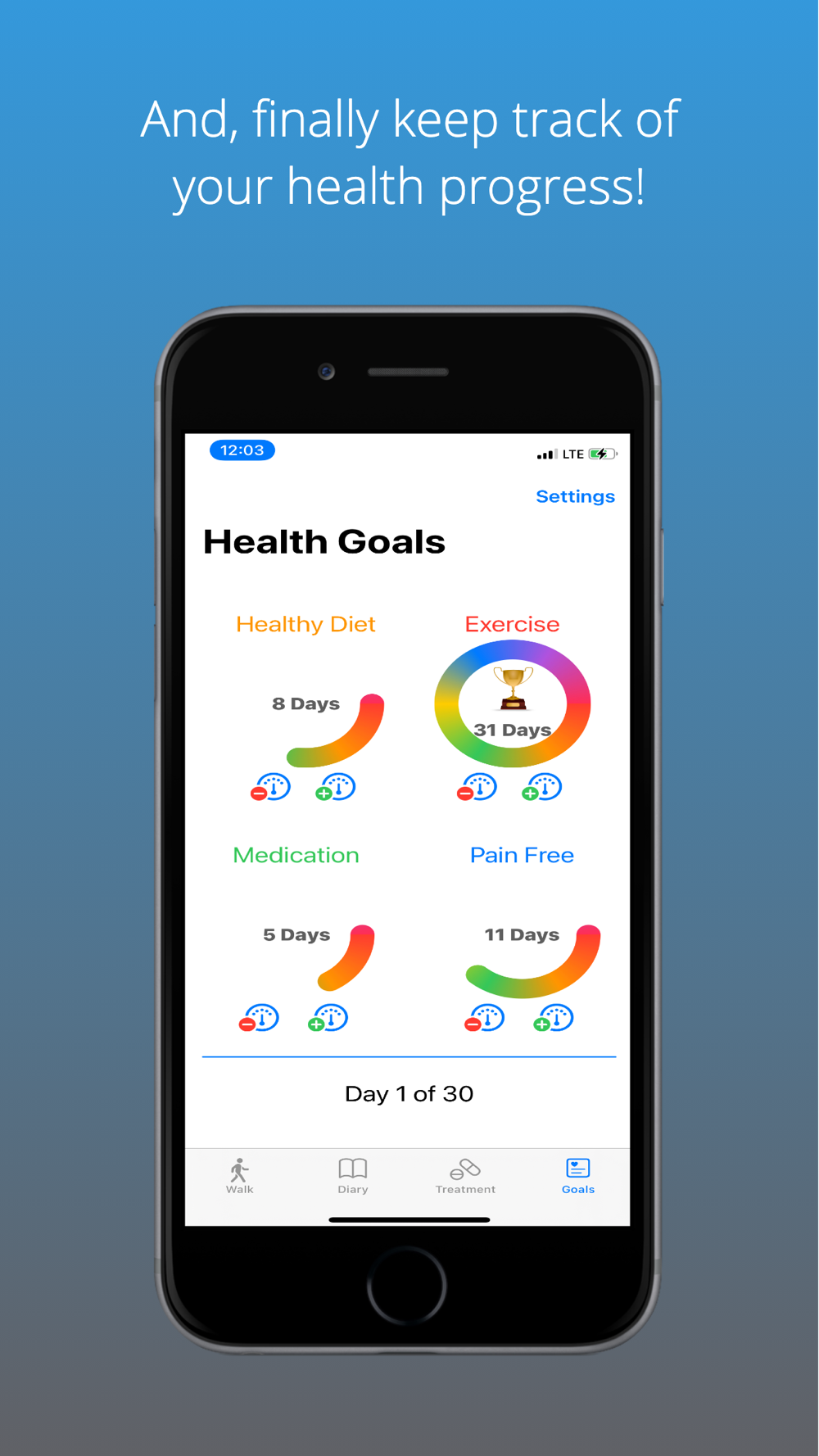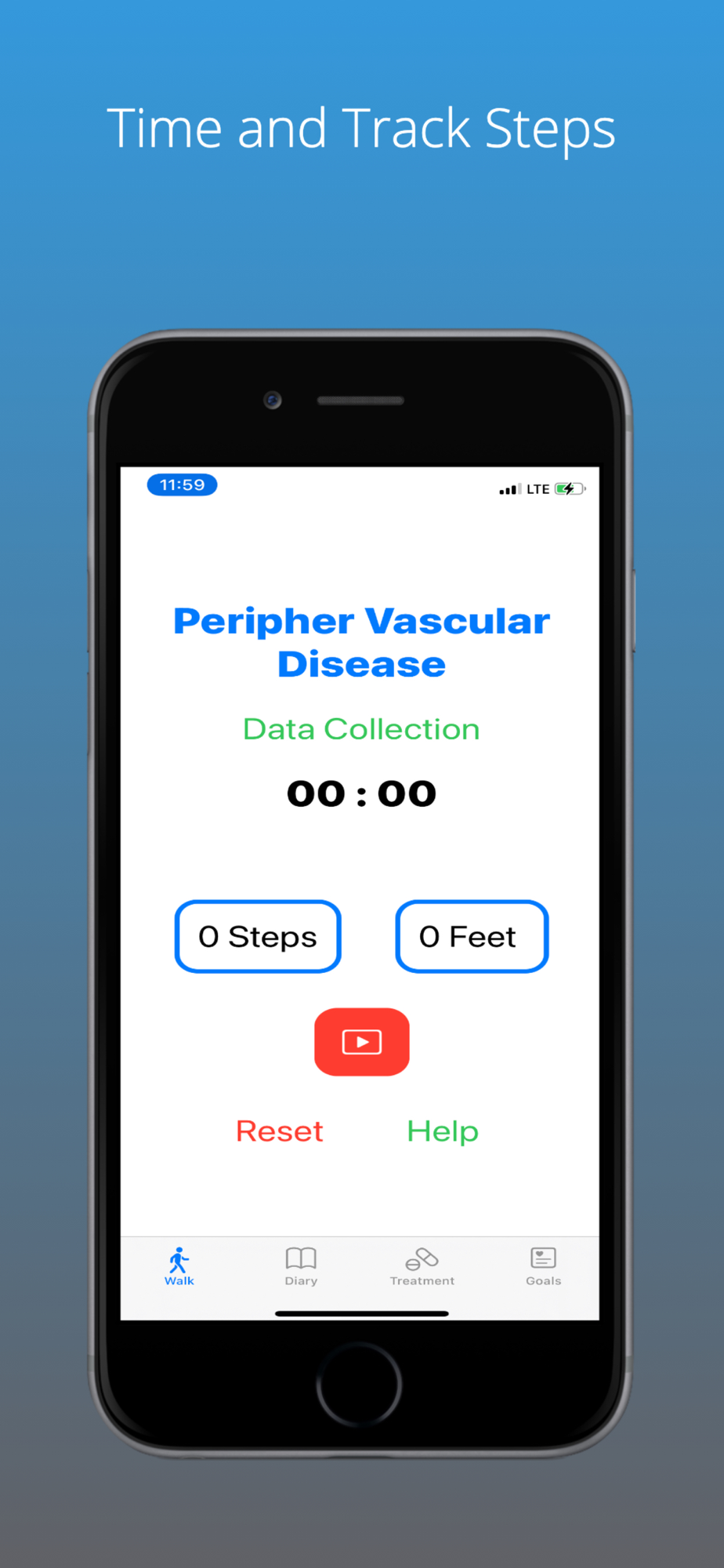 A walking application to track steps over periods of time and keep track of that information for personal use. This can show if you are improving with any changes to treatment for peripheral vascular disease you may be receiving from a medical professional. Also, includes health goals as well as a way to visually compare pre and post treatment steps.
