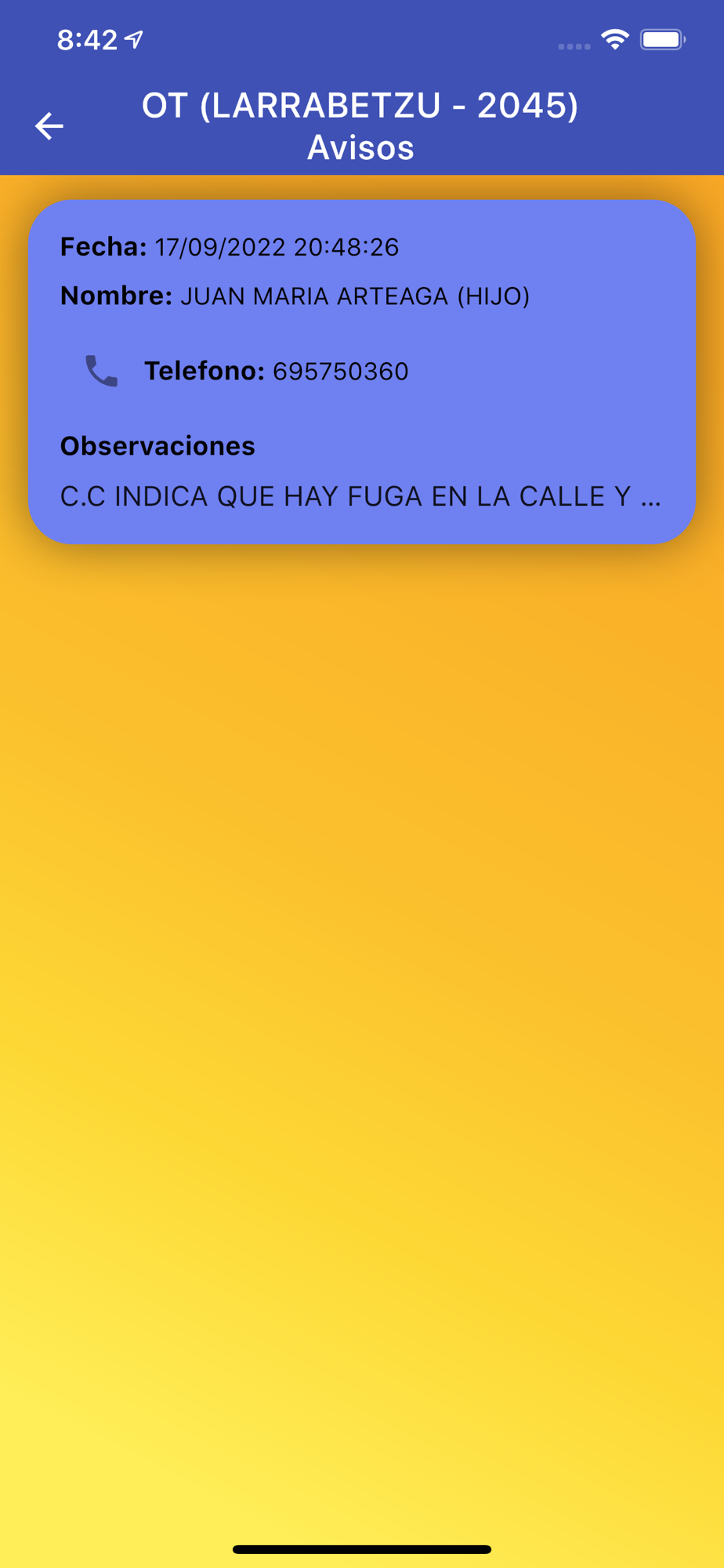 Acceso para la consulta y actualización de los datos de las ordenes de trabajo creadas para las labores de mantenimiento de las redes de distribución de agua potable del CABB.