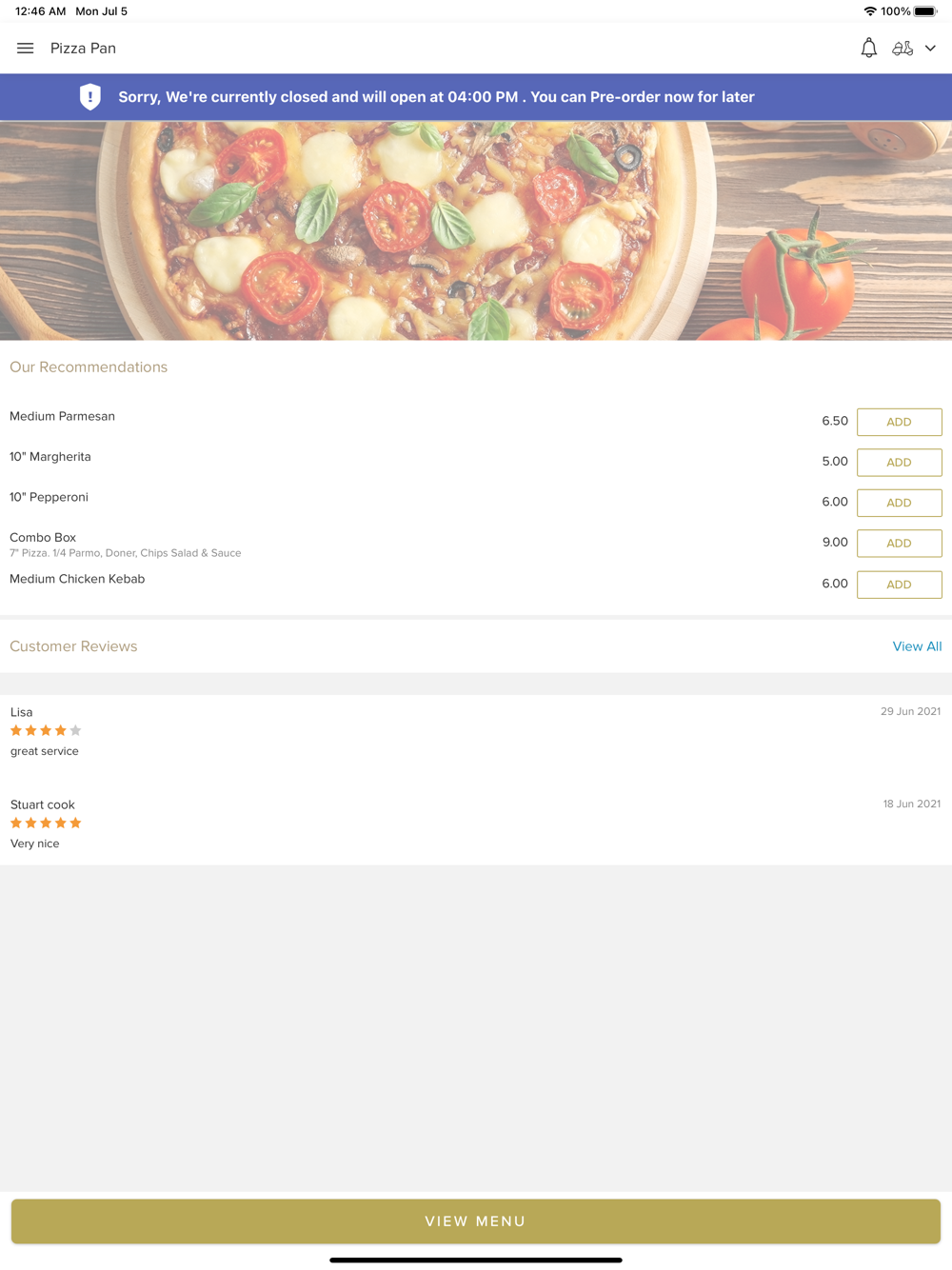 Here at Pizza Pan, we serve a variety of food such as pizzas, burgers, wraps, kebabs and more.