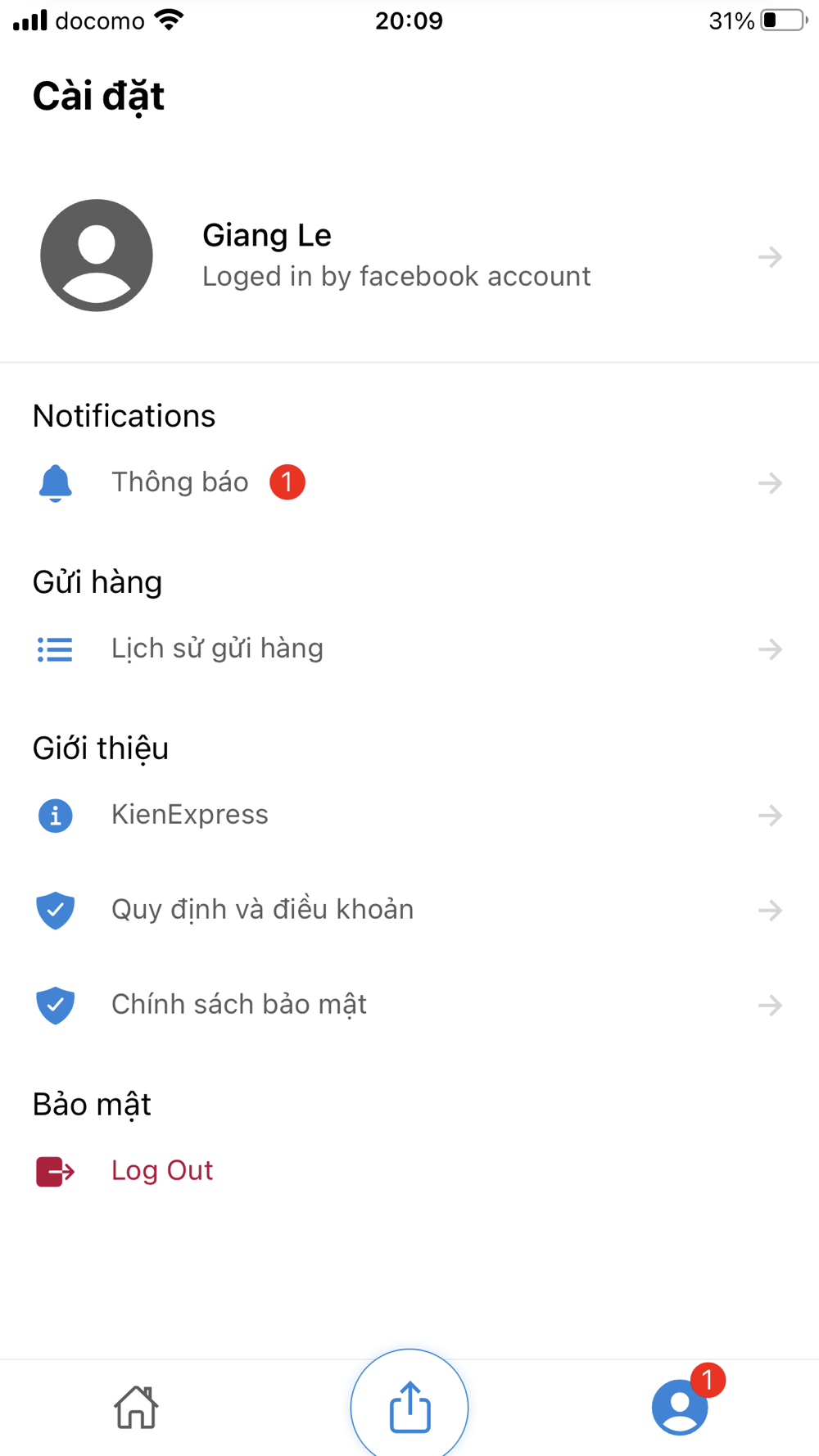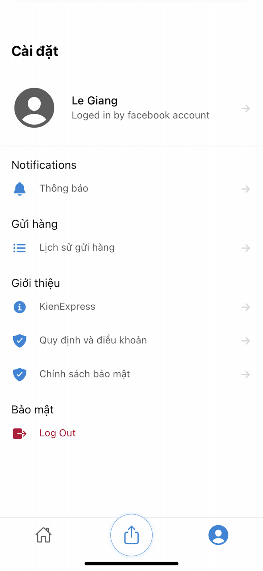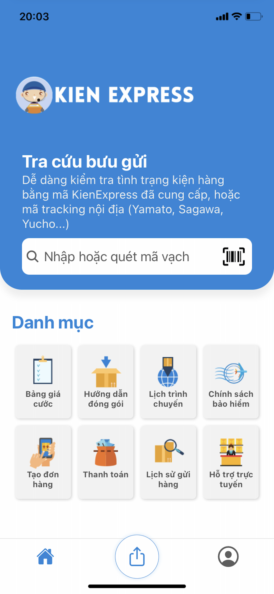 Ứng dụng tạo và quản lý bưu gửi dành cho khách hàng của KienExpress