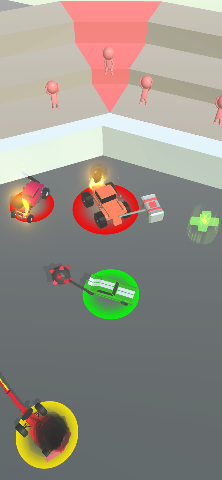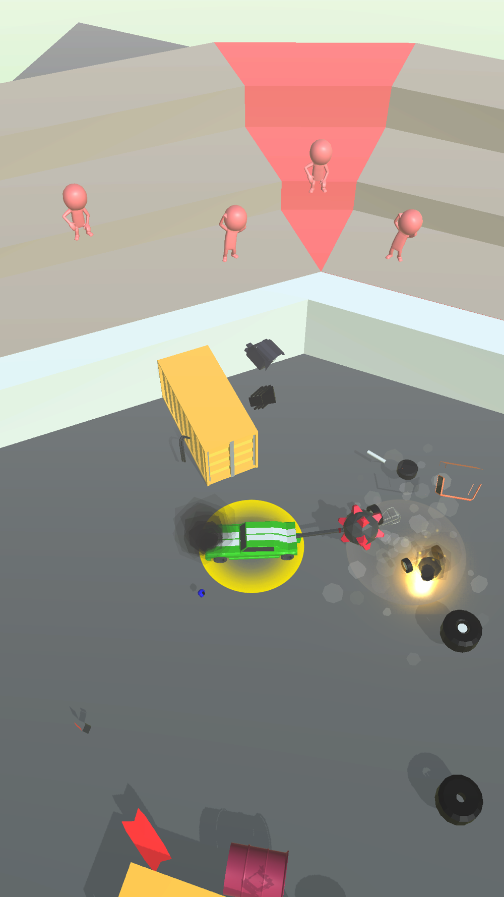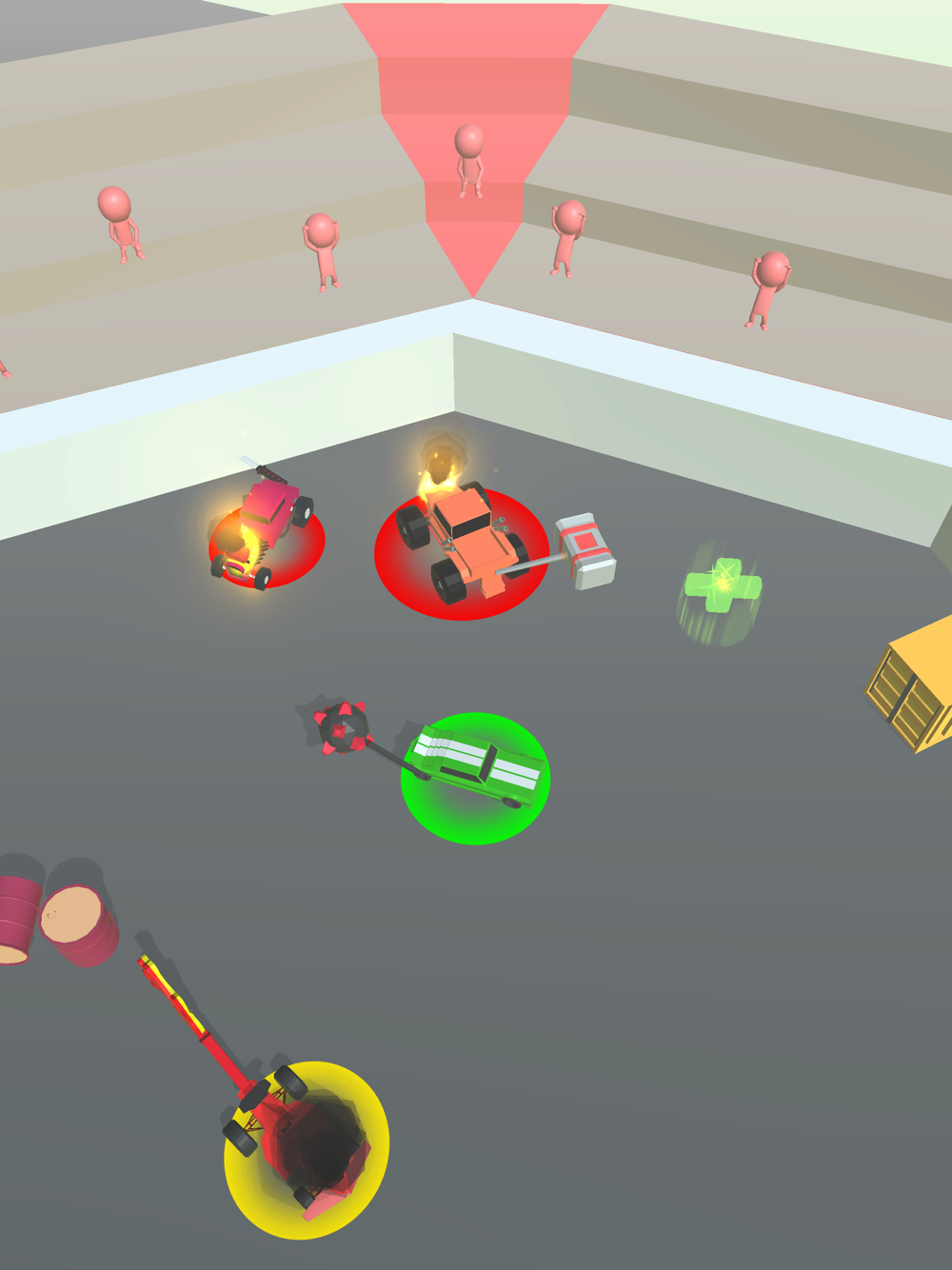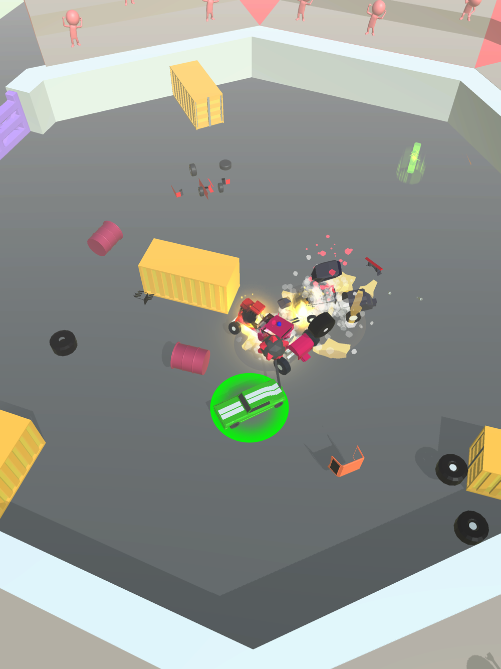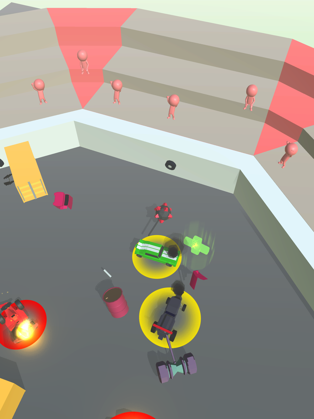 Destroy all of them to win! If you take damage, collect the wrench to repair your car.