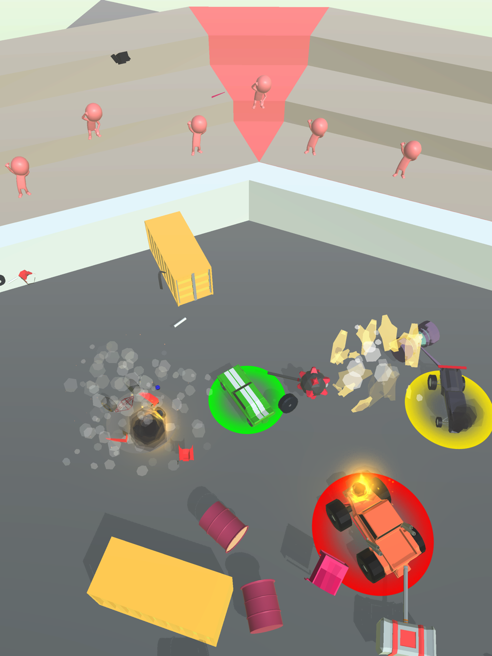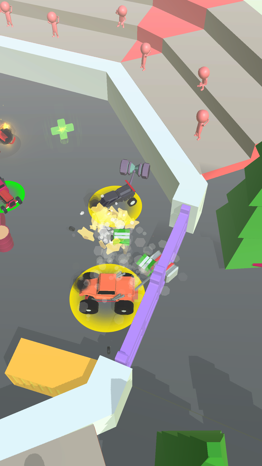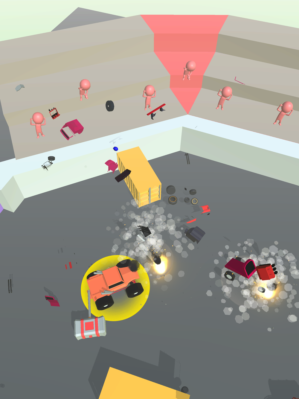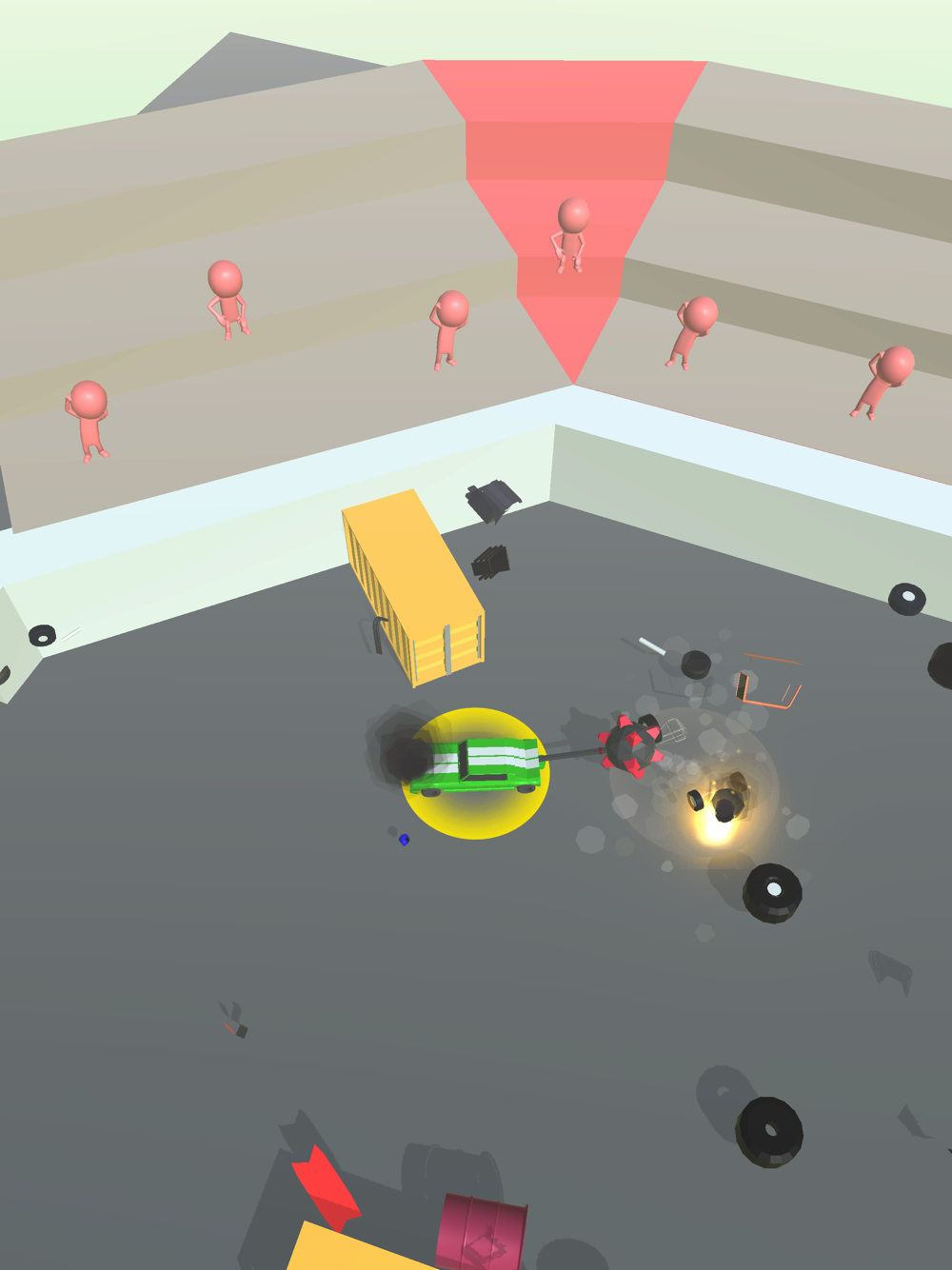 Destroy all of them to win! If you take damage, collect the wrench to repair your car.