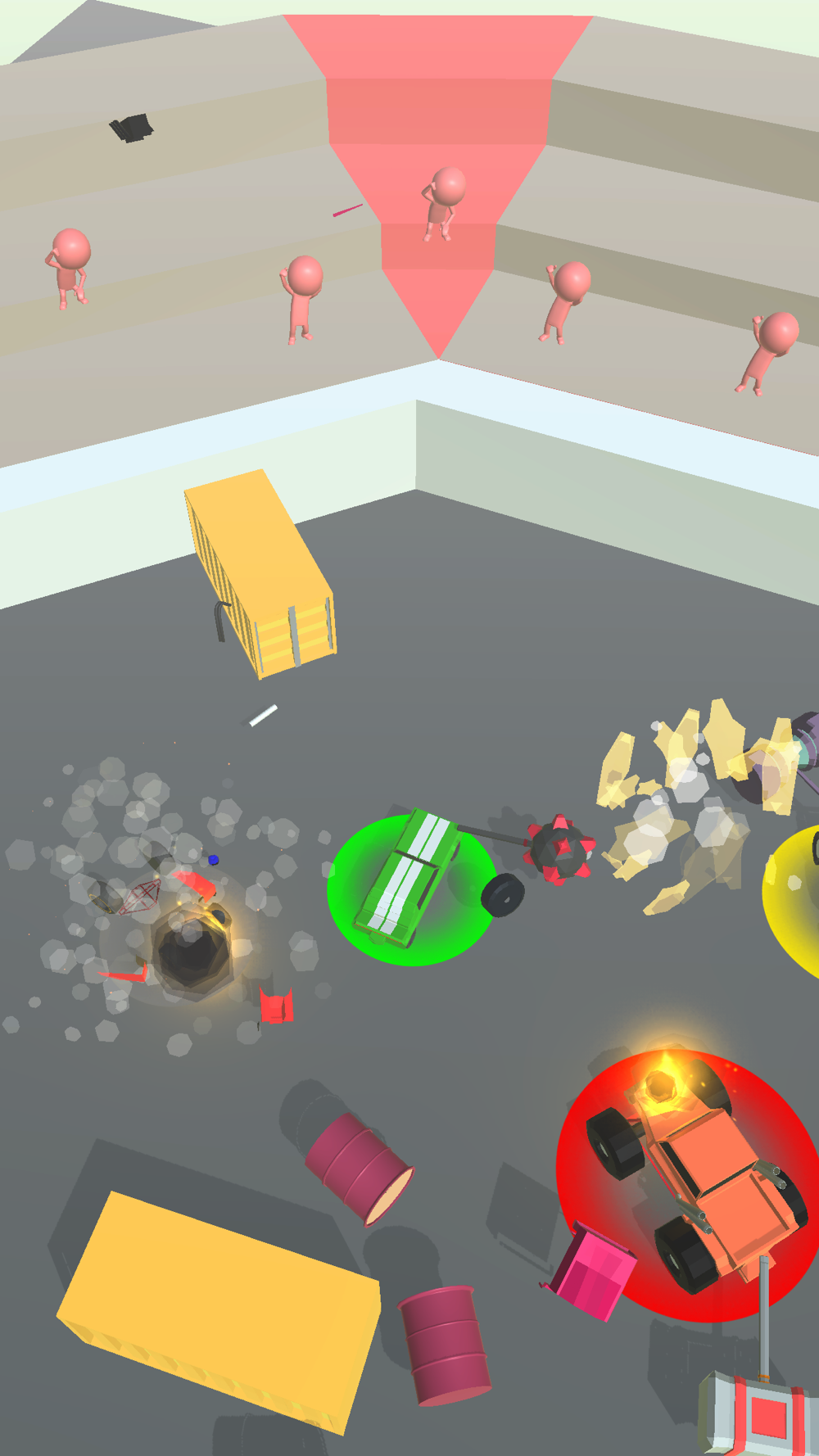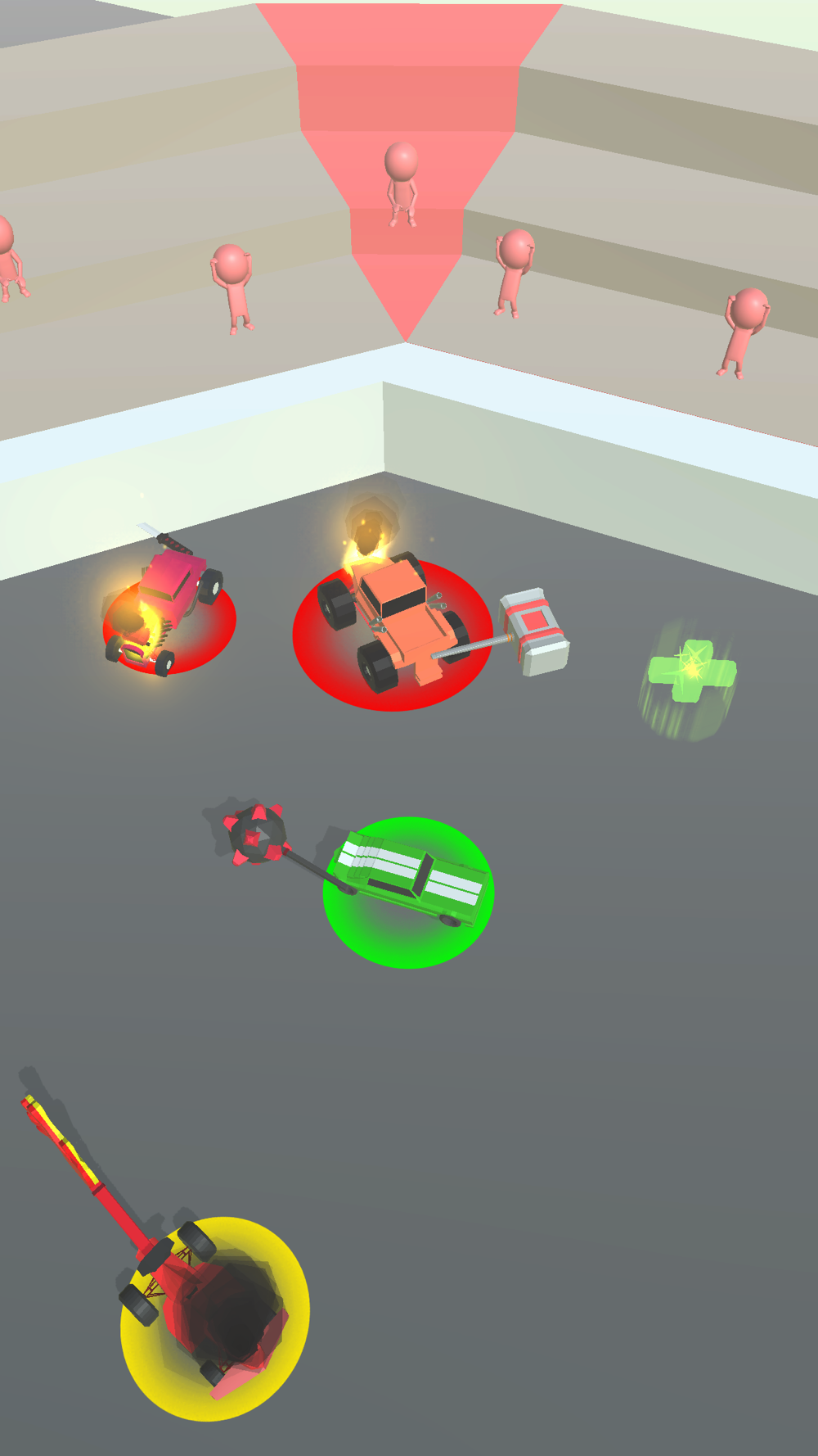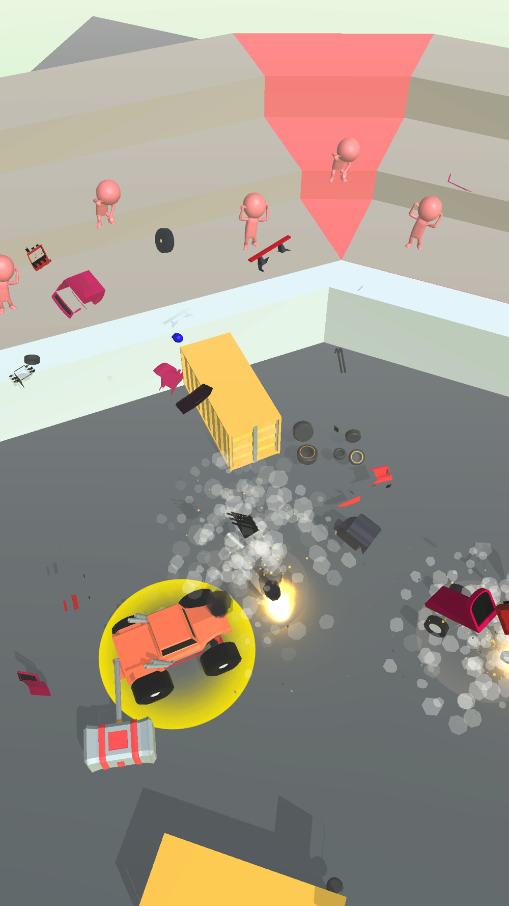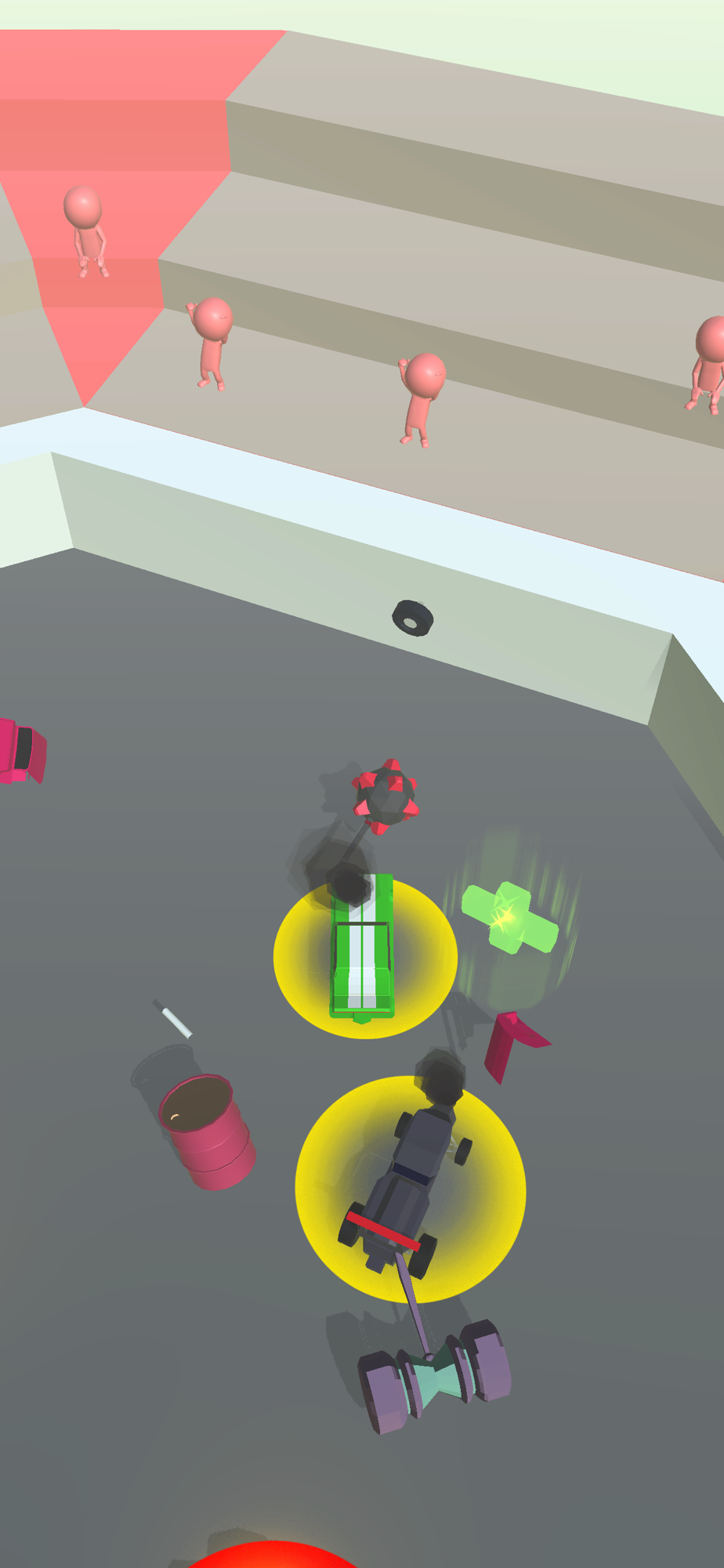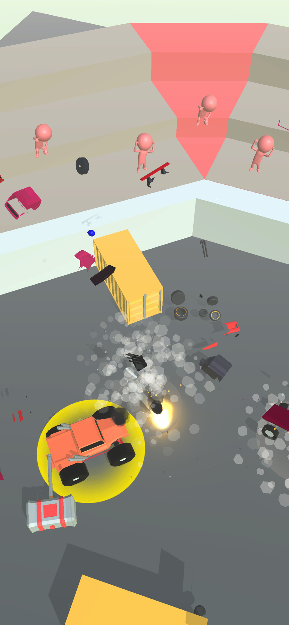 Destroy all of them to win! If you take damage, collect the wrench to repair your car.