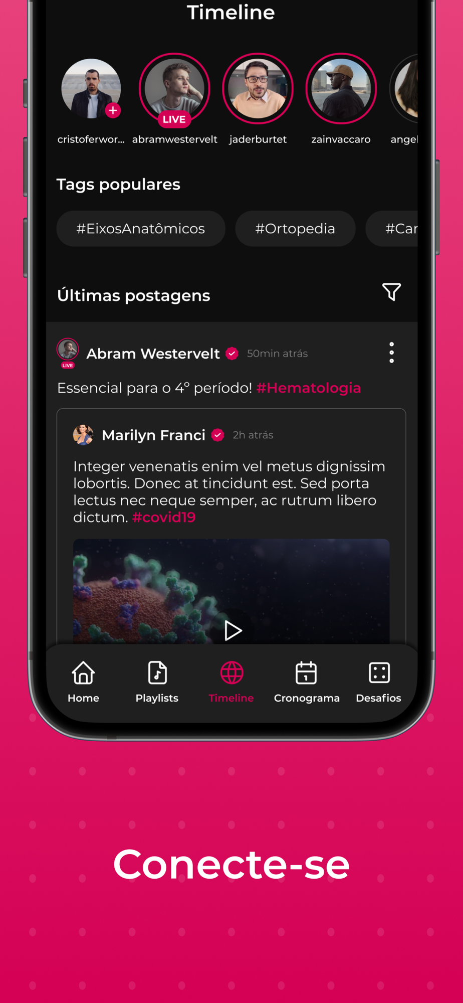 • Timeline: fique por dentro dos últimos conteúdos criados pelos professores e compartilhados por colegas no seu feed;
