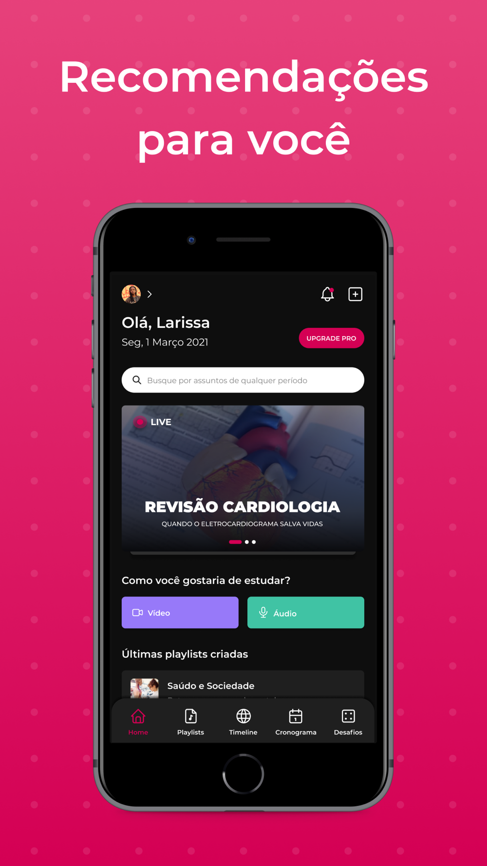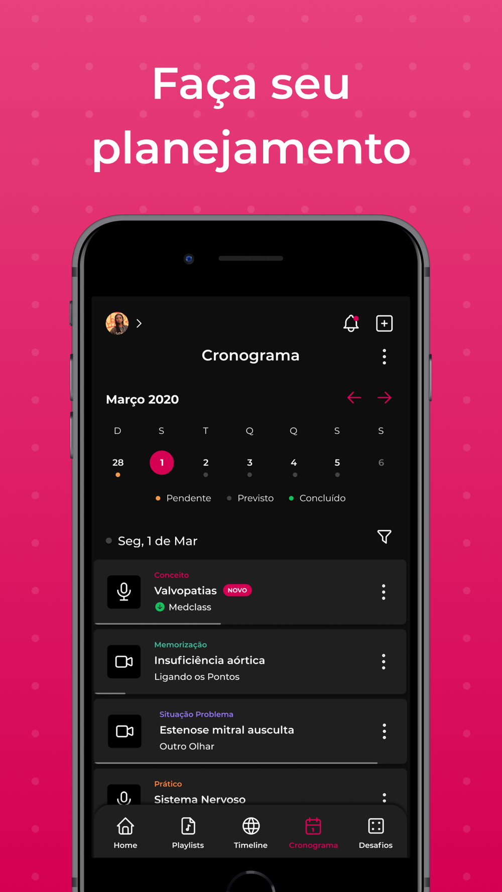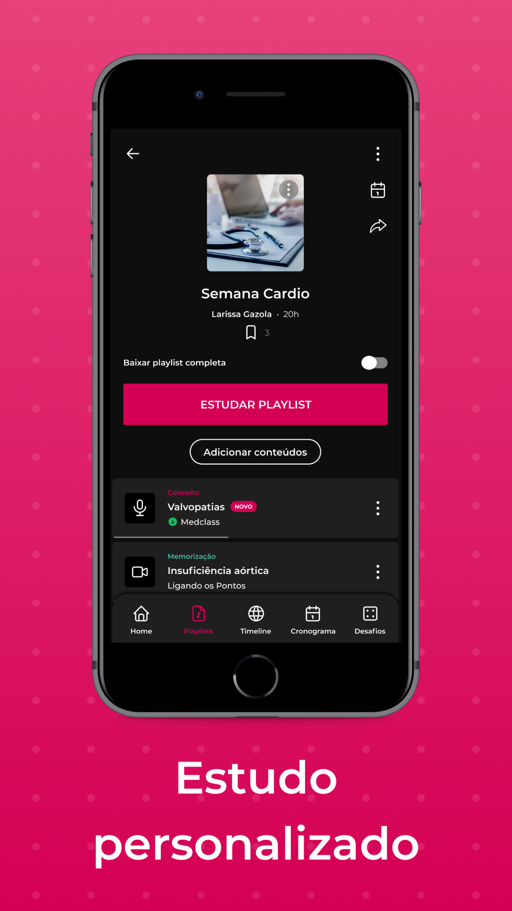 • Playlist: monte suas playlists com conteúdos que deseja estudar;