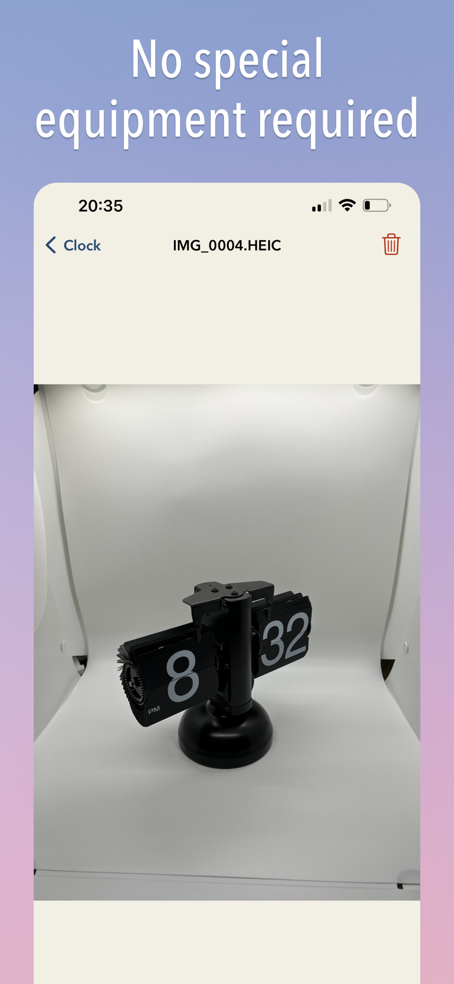 Place your object on neutral plain background and take 30-200 photos using Modelified app