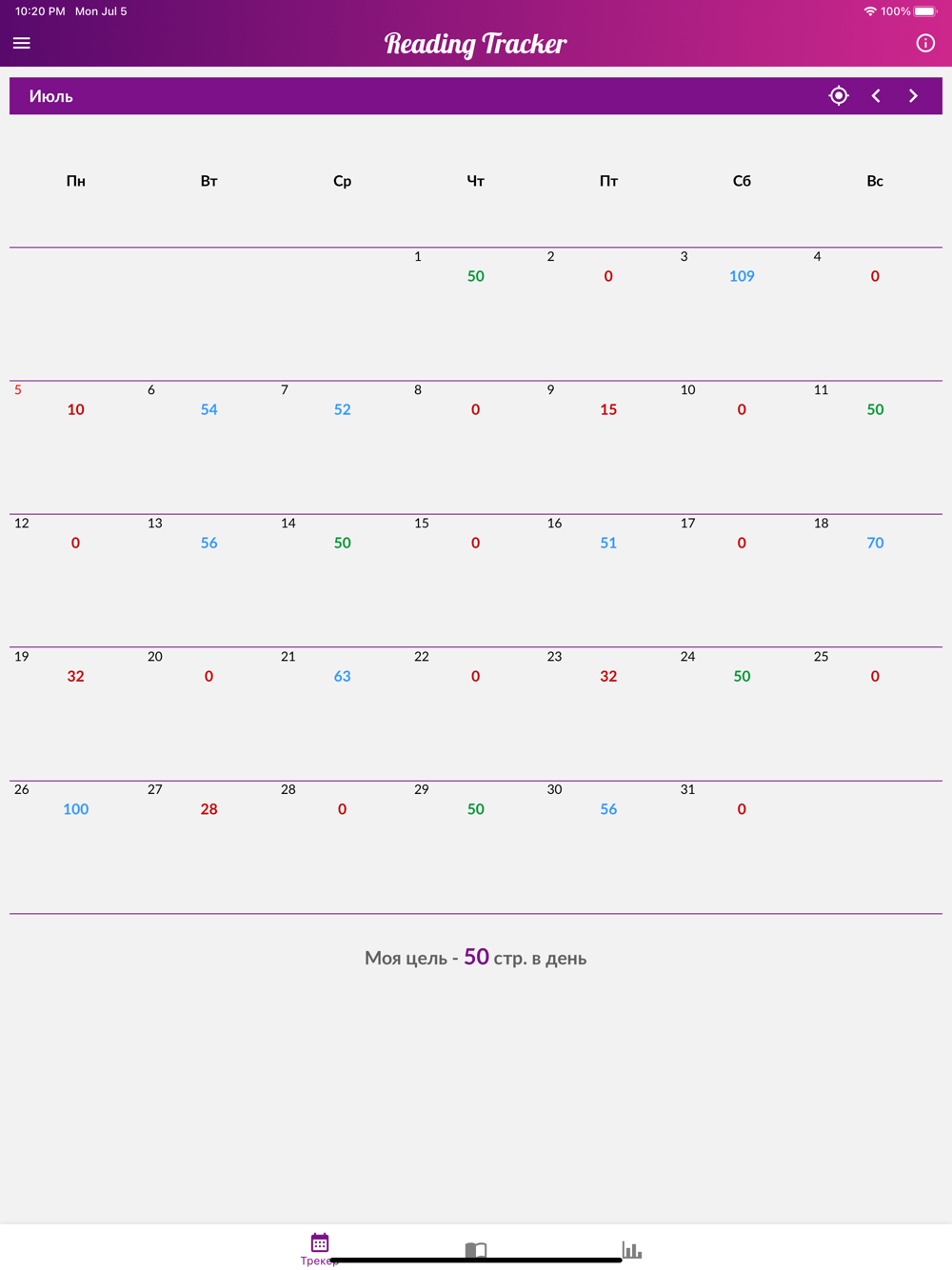 Мобильное приложение «Reading Tracker – трекер чтения» поможет вам начать читать больше. Всем известно о пользе ежедневного чтения, но в повседневной суете о книгах легко забыть, заполняя Reading Tracker вы с легкостью обзаведетесь этой полезной привычкой и поймете, что всегда можно найти время для хорошей книги. Задайте себе ежедневную цель (сколько страниц планируете читать каждый день), и заполняйте книжный трекер.