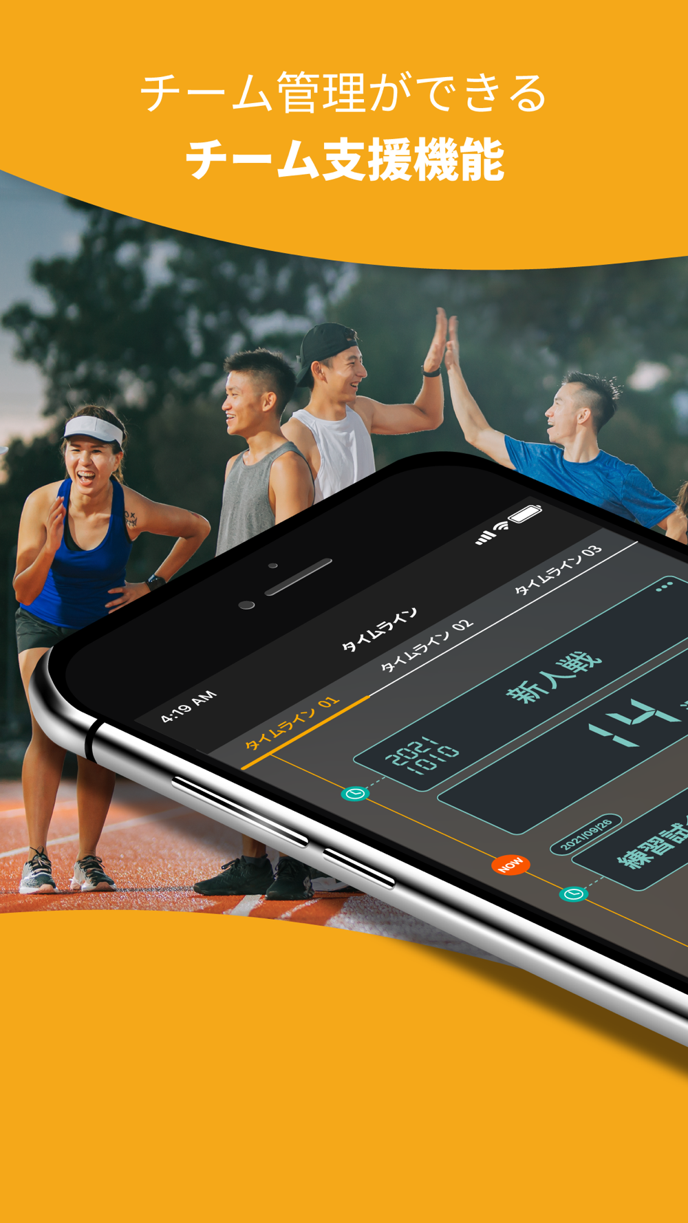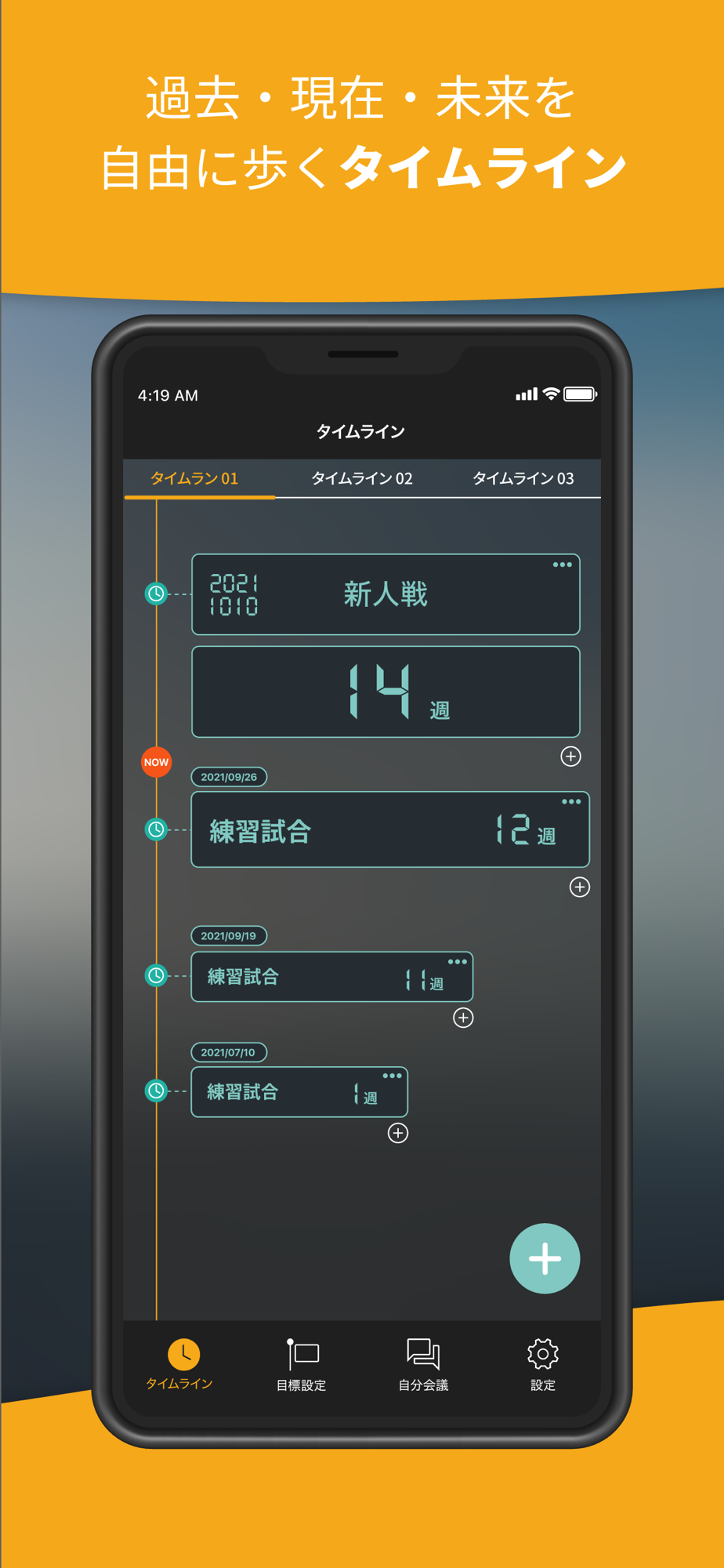 タイムライン、目標設定、自分会議を選手・指導者・スタッフ・チーム関係者全員で共有し、シナジーを生み出す機能です。