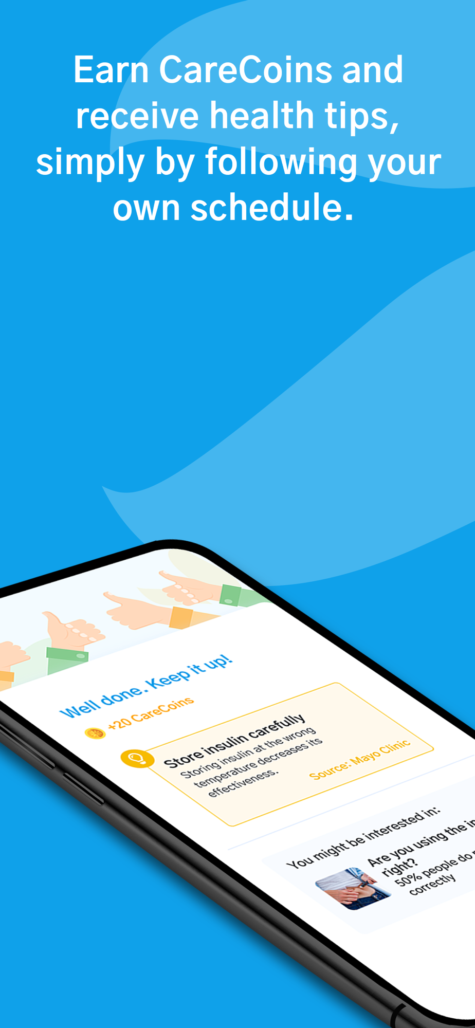 • Upgrade to Premium and earn CareCoins just by taking your medication on time. Redeem them for Gift Cards, Discount coupons and more.