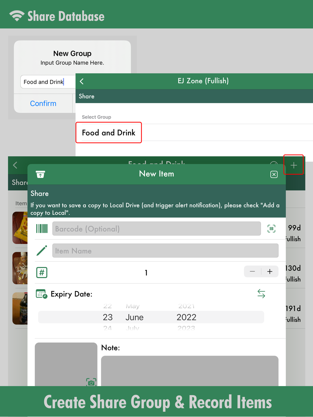 Share Database - Share list of items, sync expiry information and co-manage the items with friends and families.