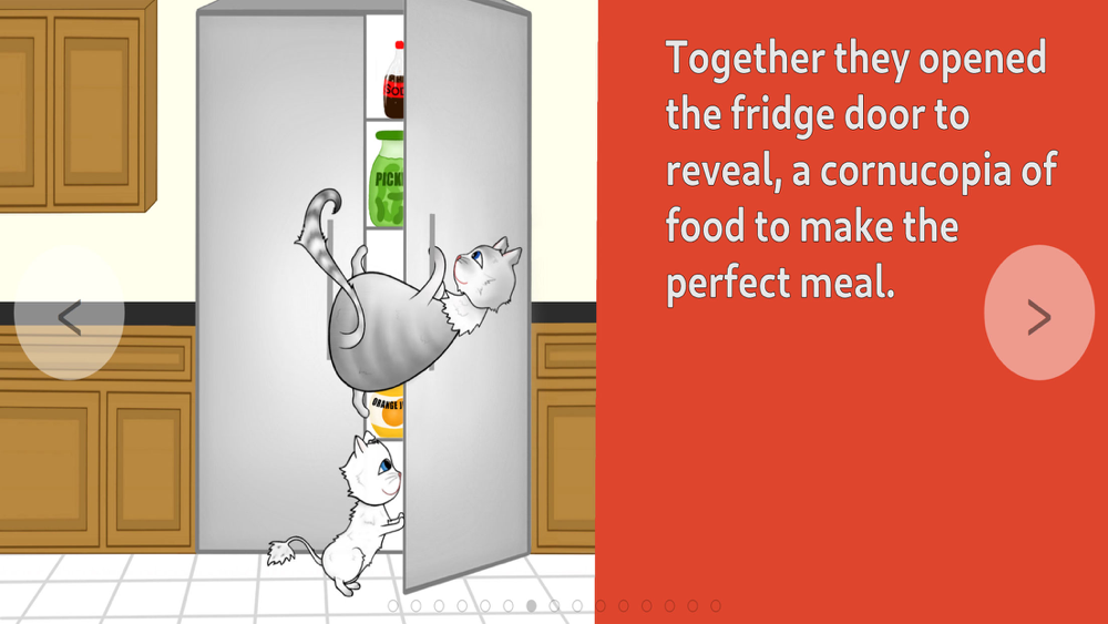 This book is part of the Bwibbles and Fritz series of children's books. As an e-book, you can page through the book at your own speed and read along (or be read to). You can also chose to have the words read aloud by the app, in male, female, or cat voice!
