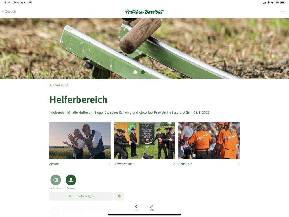 Offizielle Helfer App des Eidgenössischen Schwing- und Älplerfestes 2022 Pratteln im Baselbiet. Die dient als offene und geschlossene Kommunikationsplattform mit den Helferinnen und Helfer.