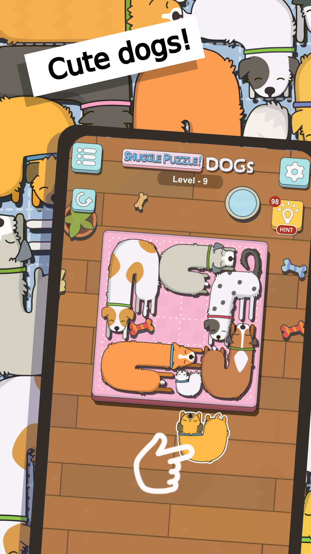 It's bed time for your sleepy dogs and every pup wants a spot. Fit all your furry friends together in their bed to solve the puzzles in Snuggle Puzzle: Dogs Edition. Features three difficulty settings with hundreds of challenging puzzles for you to solve. Includes over 20 sleepy dogs who are ready for their nap.