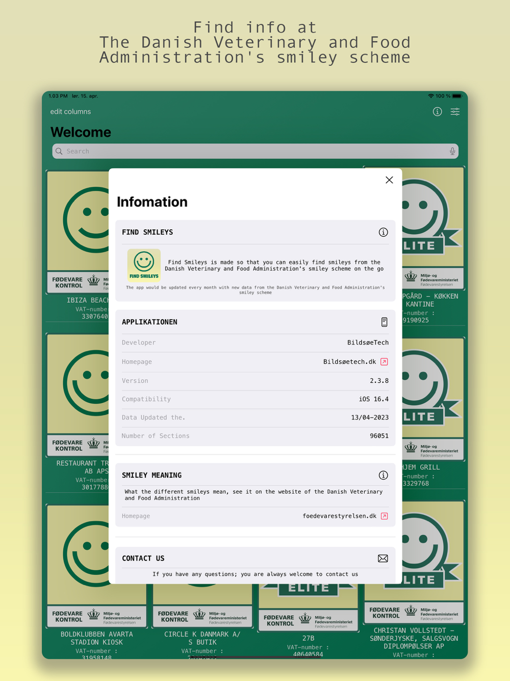 NOTE: This Find Smileys app was neither developed for nor in collaboration with the Danish Veterinary and Food Administration.