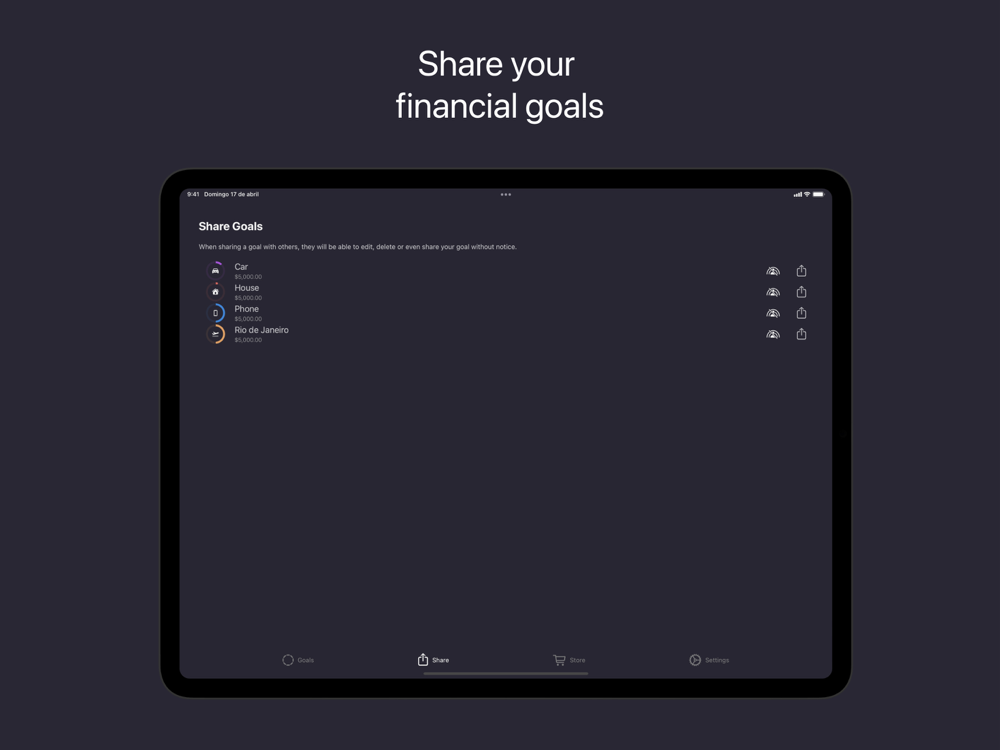 Some goals involve more than one person. By sharing a goal you allow other people to help achieve it.