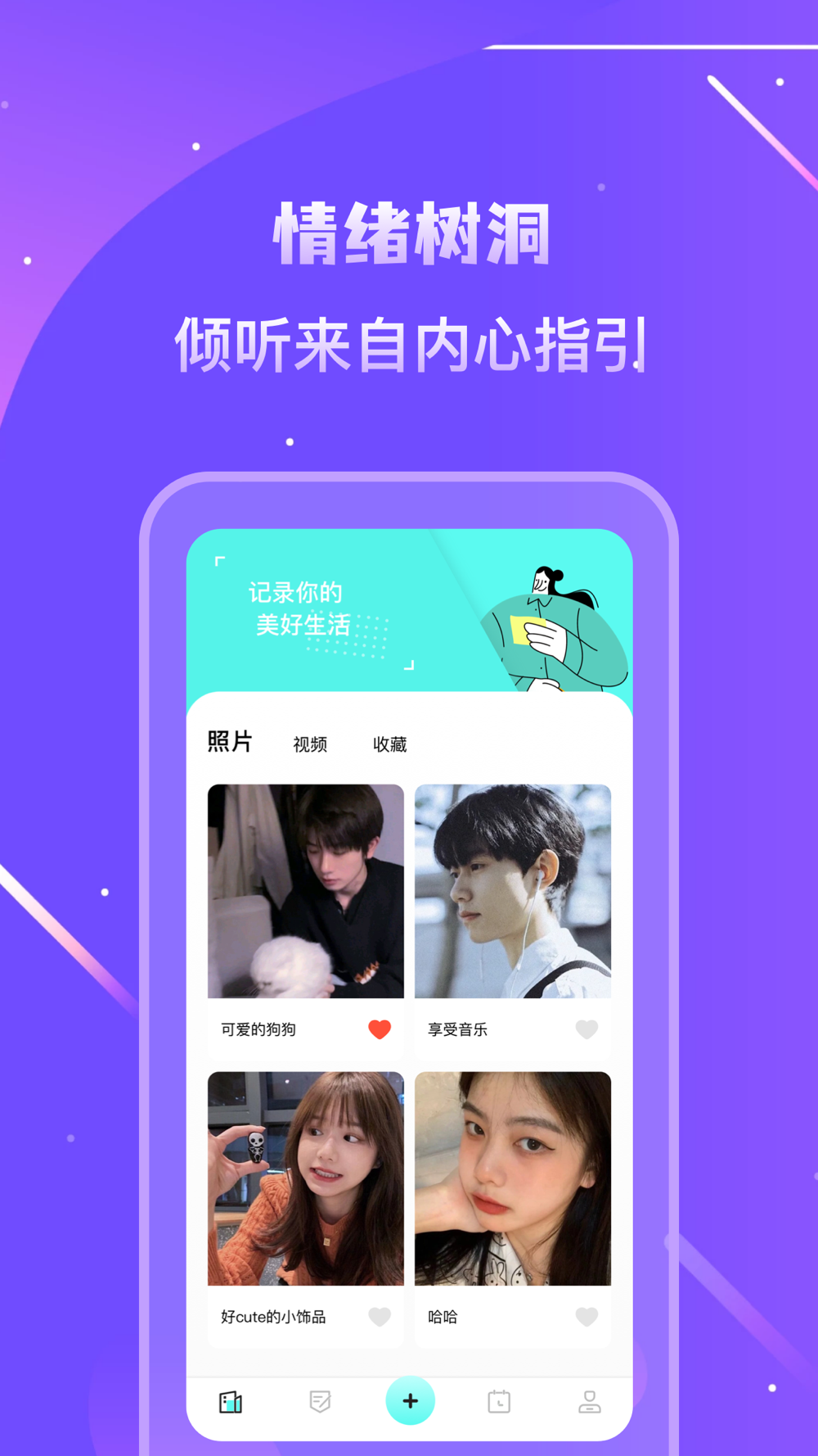 情绪树洞-我的心情树洞空间,是一款表露自己情绪的空间APP,在这里可以创建自己的纪念墙,备忘录,纪念日等,是一个自我情绪倾诉的好地方,欢迎大家使用。