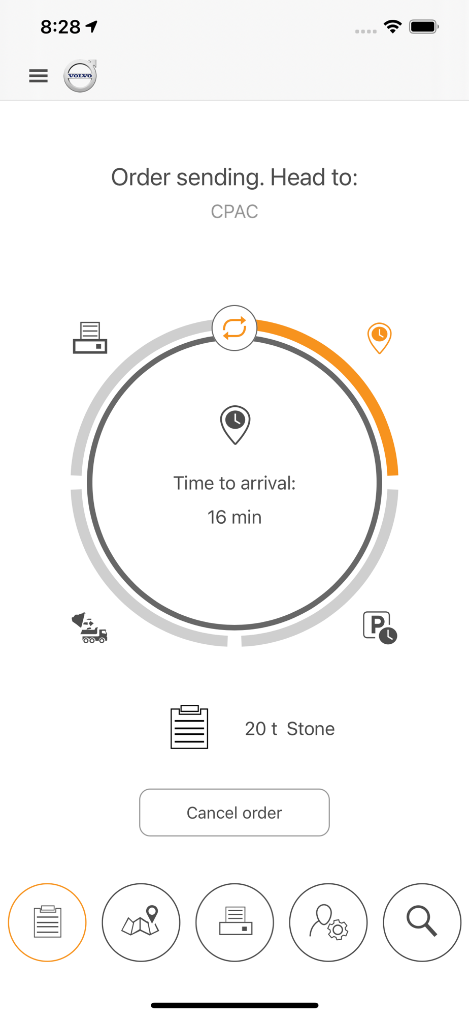 Material order handling connecting trucks with construction equipment at construction sites.