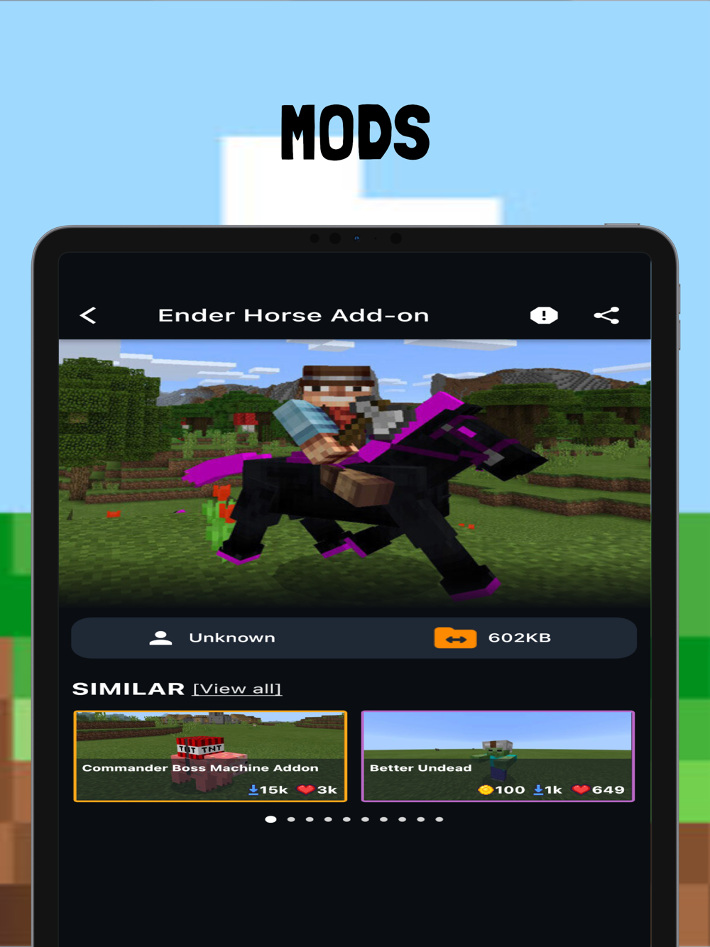 ModBox is a free application for installing mods, skins, buildings and maps. The application installs new mods, skins, maps, buildings, seeds and textures on your phone with one click. In the application, you can create your own unique skin for Minecraft. Choose clothes and edit and create your own skins. Maps for MCPE: - Maps Parkour - Maps Survival and Prison Escape - Cards Creativity - Maps PVP - Maps hide and seek and missions Buildings for MCPE: - Buildings of Houses with furniture - Ship Buildings - Medieval buildings - Redstone buildings - Transport Buildings Skins for MCPE: - Skins Girls - Skins Boys - Skins PVP - Skins Cheaters - Skins from movies and games Textures for MCPE: - Shaders - Textures 128x128 - Textures 64x64 - Textures 32x32 - Textures 16x16 Addons for MCPE: - Weapon Addons - Animal Addons - Machine Addons - Mutant Addons - Addon for Children Seeds for MCPE: - Seeds of Secret Places - Seeds of the Caves - Seeds of the Islands - City Seeds - Settlement seeds Disclaimer: This is not an official Minecraft product. It is not approved by or associated with Mojang. You can unlock all mods and disable ads through auto-renewing subscription and if you want to continue getting premium features, your subscription should be continued. Subscription can be canceled anytime. Payment will be charged to your iTunes Account at confirmation of purchase. Your subscription automatically renews unless auto-renewal is turned off at least 24 hours before the end of the current subscription. Your account will be charged for a renewed subscription within 24 hours prior to the end of current subscription. You can manage your subscription and switch off the auto-renewal by accessing your account settings after purchase. You cannot cancel the current subscription during the active subscription period. Any unused part or time-span of a free trial period will be forfeited, as soon as you purchase a subscription. All personal data is protected in accordance with the Terms of Use and Privacy Policy: EULA: https://ghostly.in/@root/terms-of-use Privacy Policy: https://ghostly.in/@root/privacy-policy