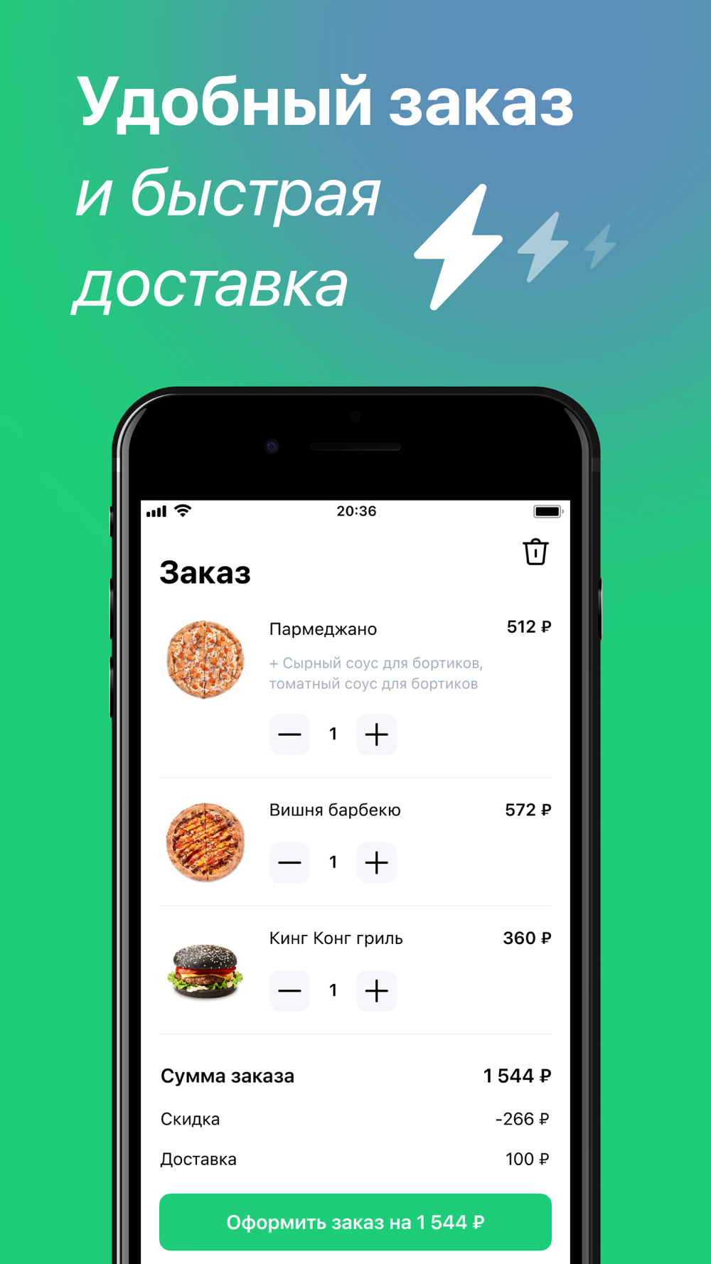Мобильное приложение пиццерии Flash Pizza. В приложении можно изучить акции и меню нашей пиццерии, а также оформить доставку.