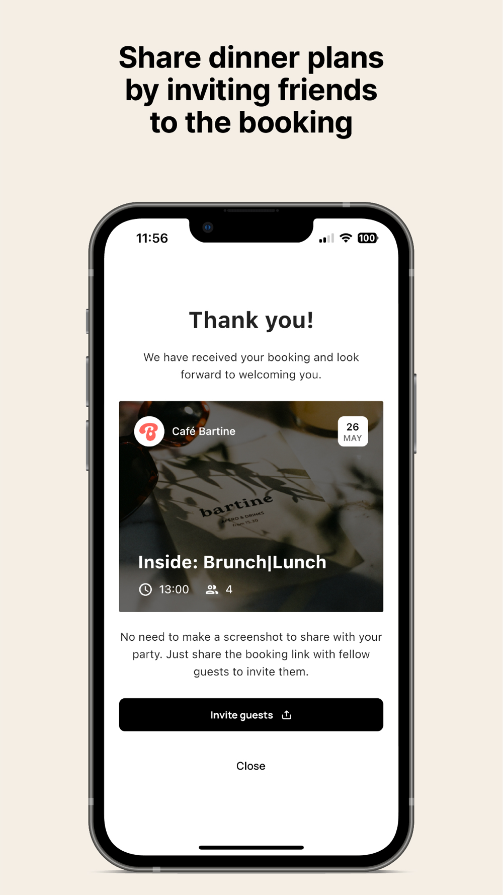 Share your booking with friends and family to get on the guest list and access reservation info.