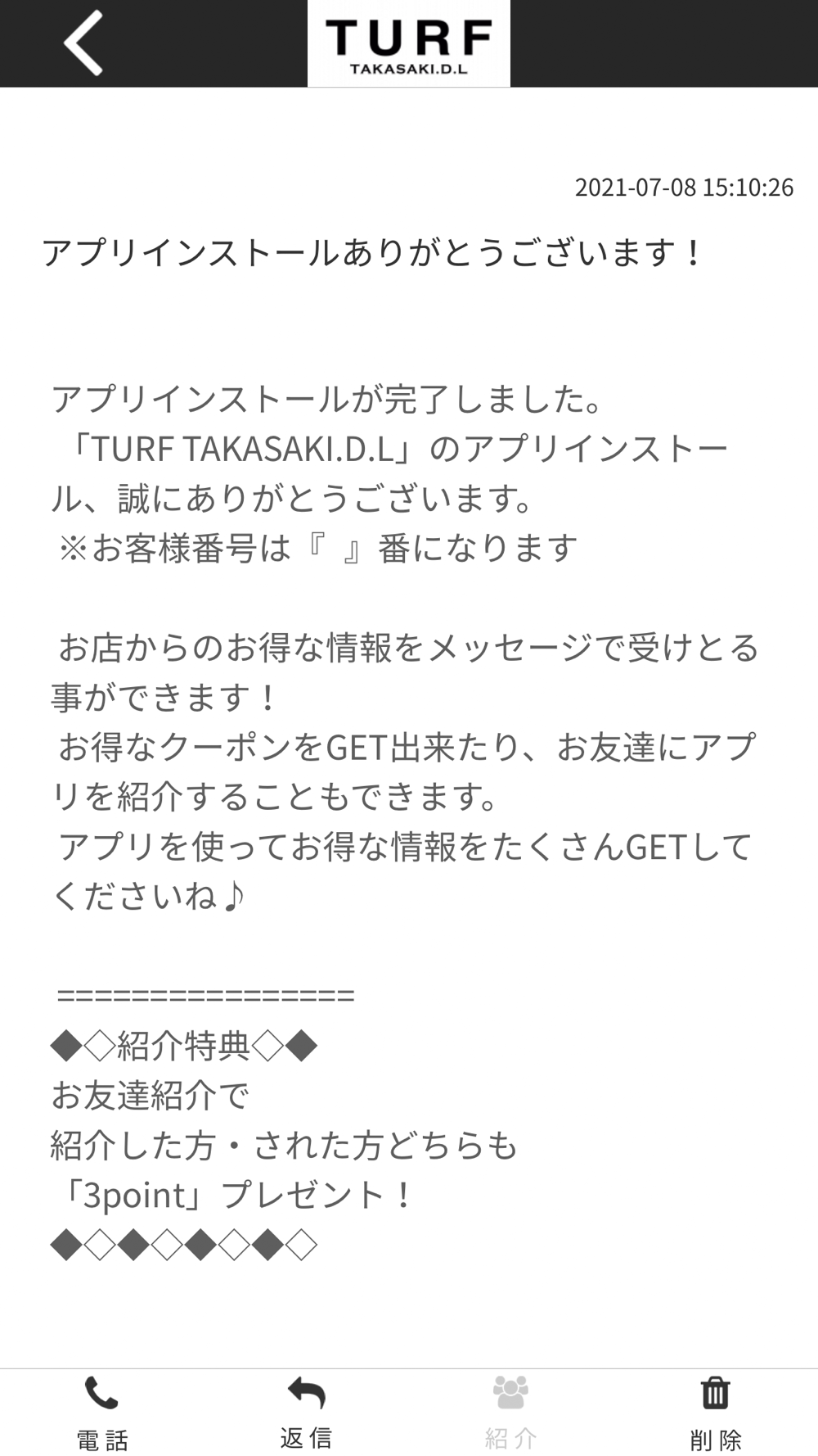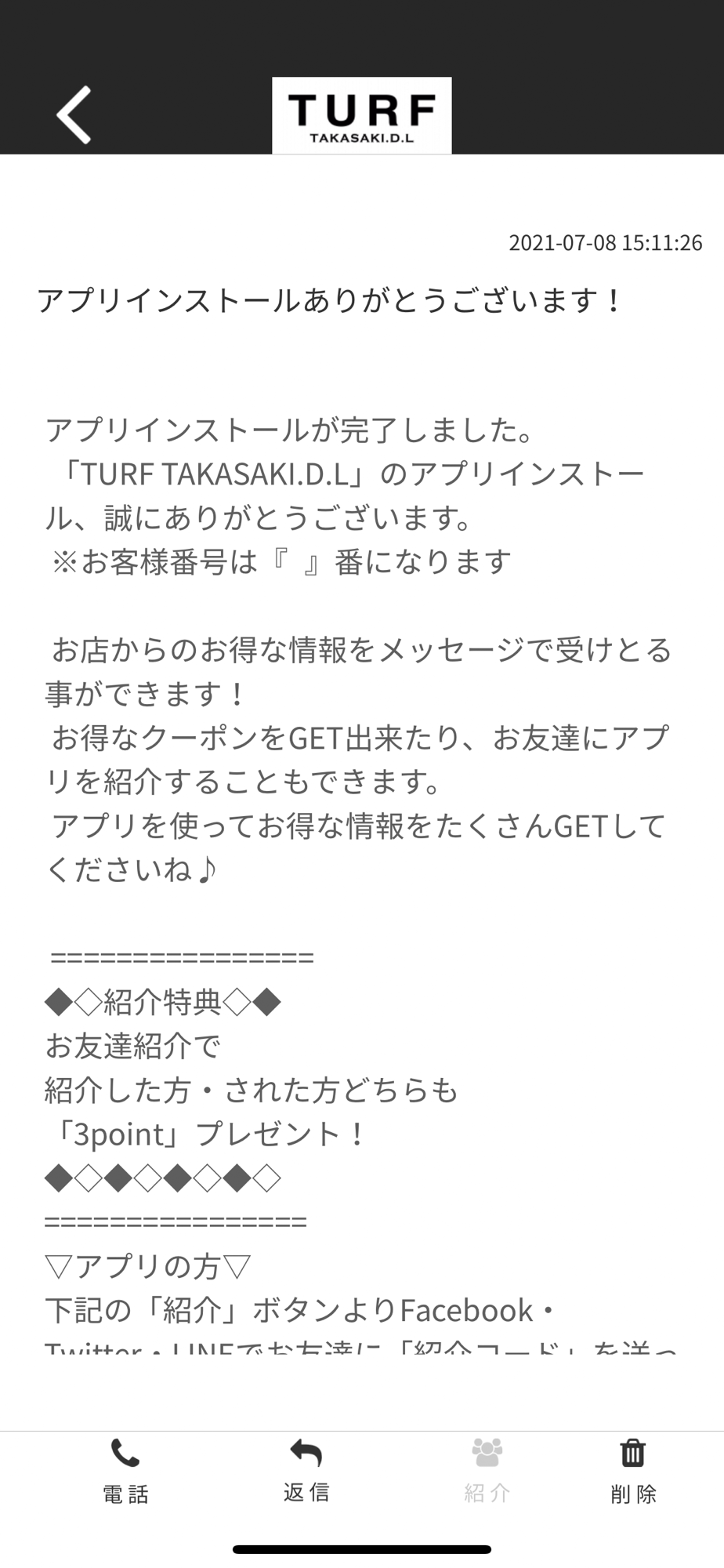 TURFのアプリをSNSを通じてお友達に紹介する事が可能です。